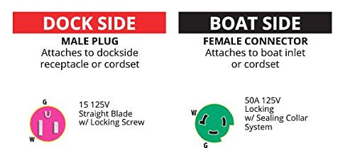 Pigtail Adapters Allow You To Connect From One Dockside Receptacle (Or Other Power Source Receptacle) To One Boat Side Inlet Or Equipment Of A Different Power Configuration. These Adapters Are Fully Molded And Equipped With The Marinco Unique Sealing Collar (Where Indicated) And Covers For Use In Wet Locations.