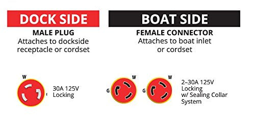 Q: What materials are used in the construction of this adapter?A: The Marinco Y30-2-30 EEL Y Adapter is made from durable plastic, designed to withstand the rigors of marine use while providing long-lasting performance.