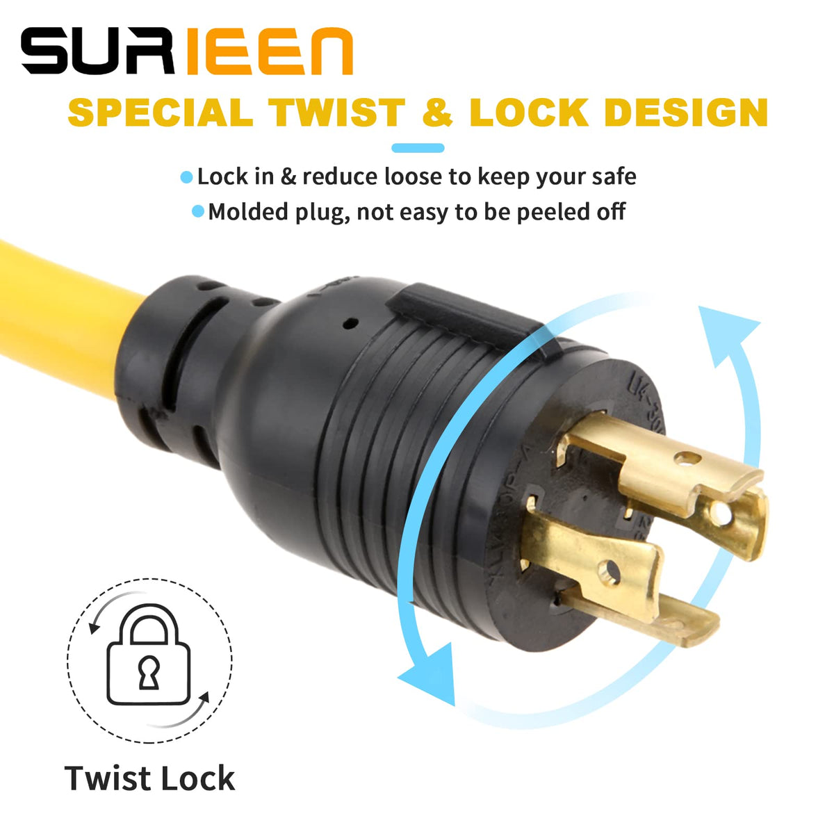 Nema L14 30P To 6 50R Generator Power Cord Welder Adapter, 1.5Ft 4 Prong To 3 Prong Generator To Welder Adapter Power Cord 125/2