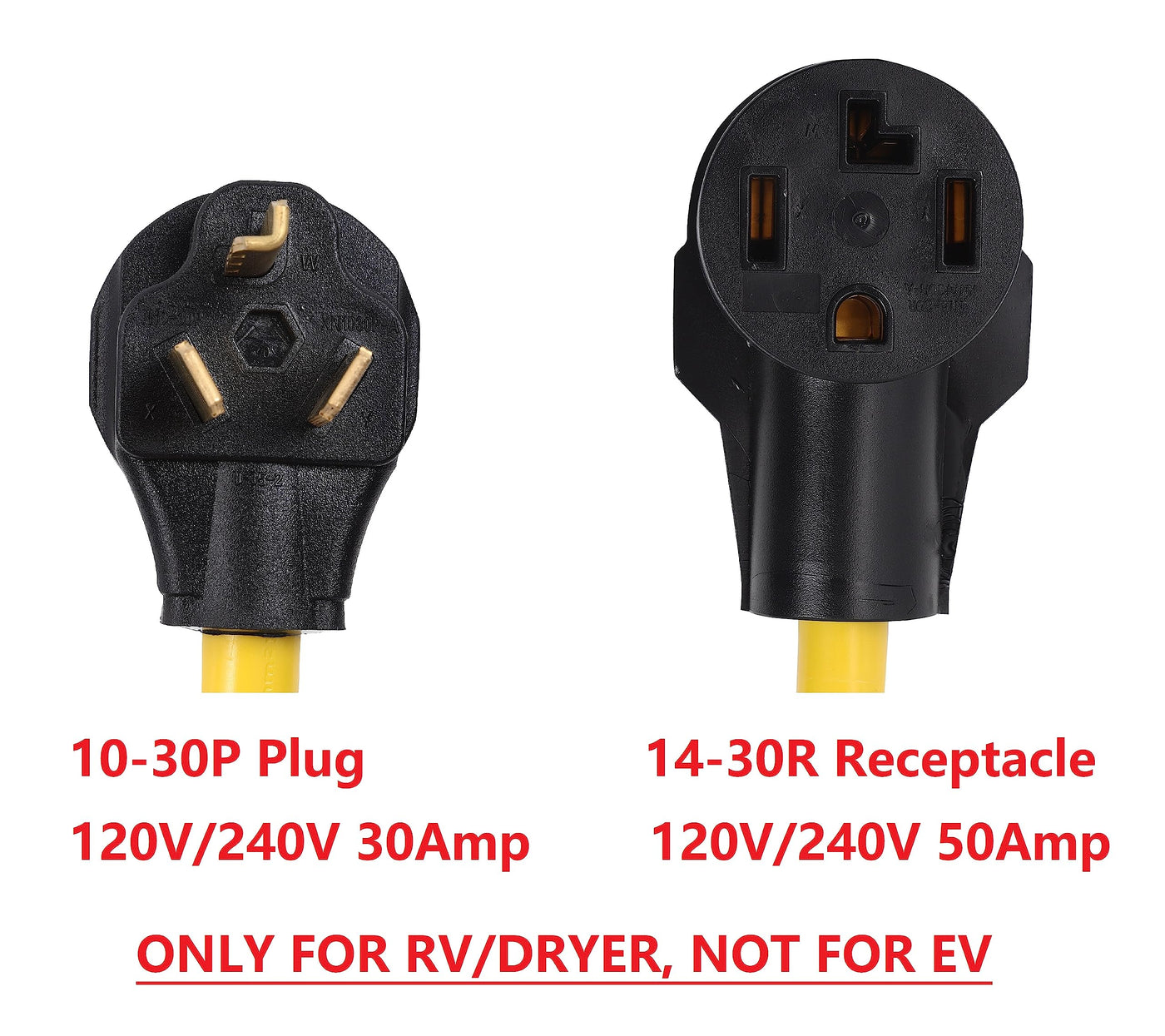 Q: What devices can I use with the ONETAK NEMA 10-30P to 14-30R adapter?A: The ONETAK NEMA 10-30P to 14-30R adapter is designed for use with 120V/240V RV and dryer devices. It is important to note that this adapter is not compatible with electric vehicles (EVs).
