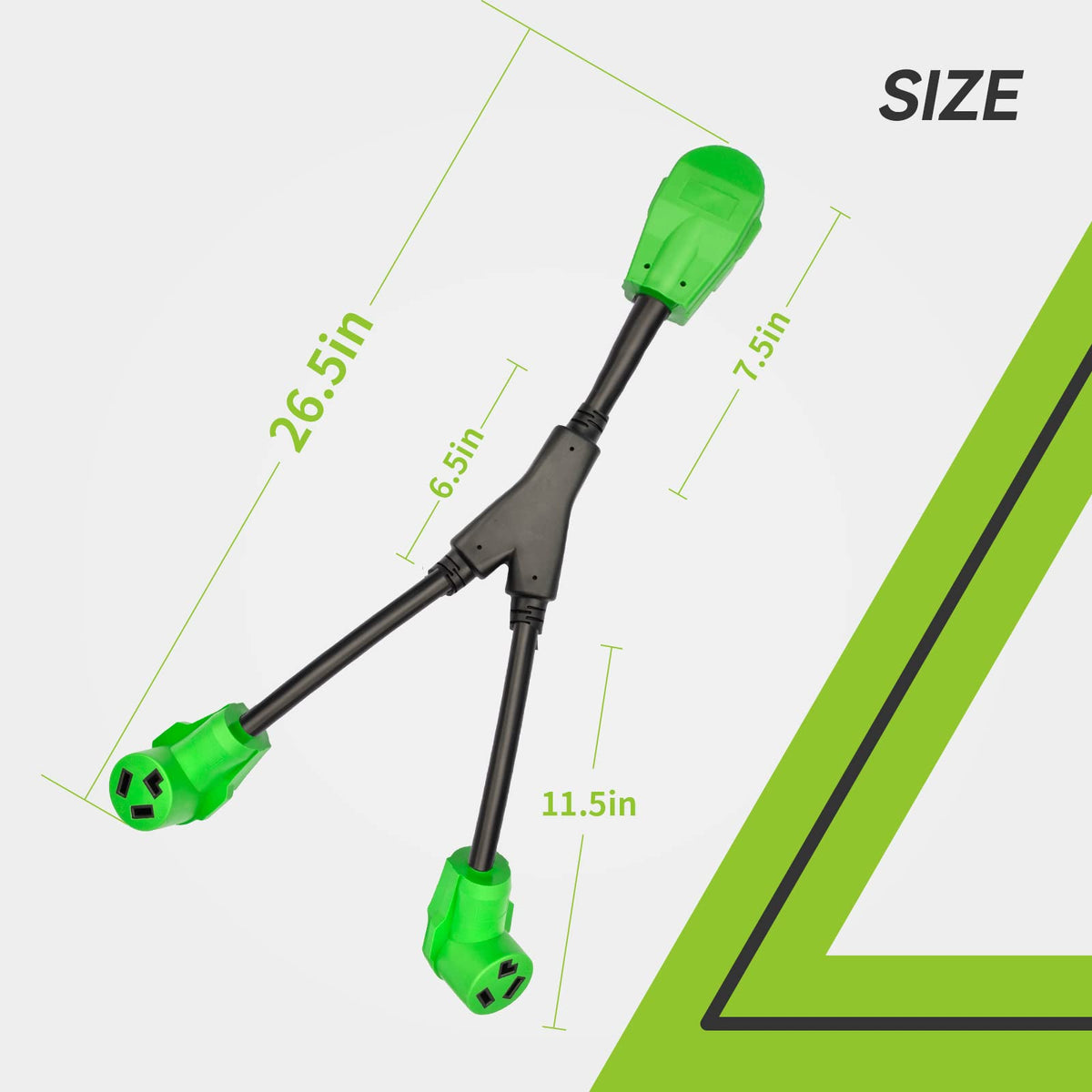 Rvmate 3 Prong Dryer Splitter 30 Amp, Nema 10 30P To (2)10 30R Y Receptacle 26.5 Inch, Built To Last, Waterproof Pvc Jacket