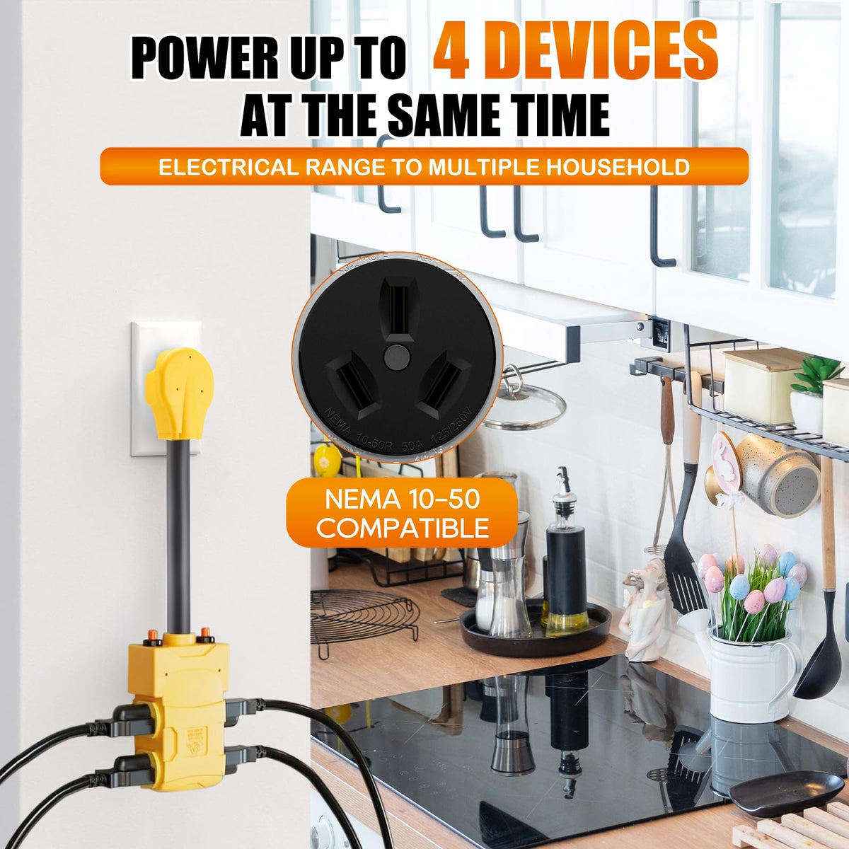 Tellegloww 220 To 110 Adapter Compatible With Nema 10 50P To 4X 5 20R/15R With 20 Amp Circuit Breaker, 220/250V Electrical Stove