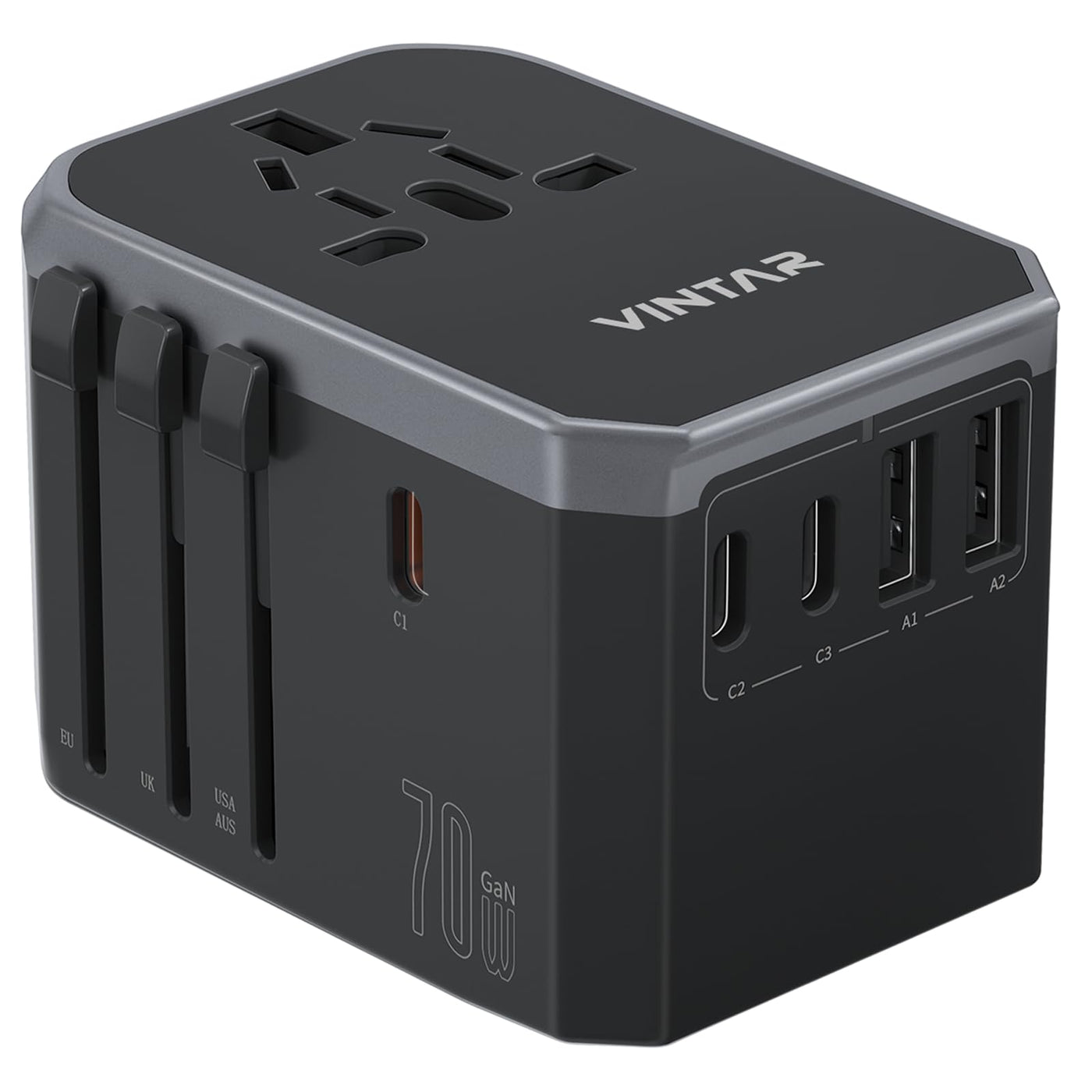 Universal Travel Adapter, Vintar 70W Gan International Power Adapter With 5 Usb Ports (3 Usb-C), Worldwide Travel Plug Adaptor,