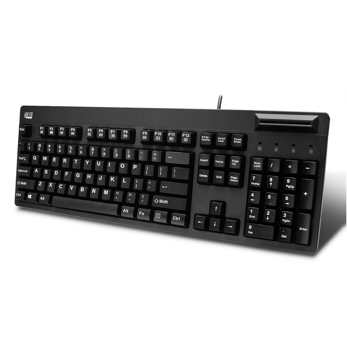 Q: Are the keycaps on the Adesso EasyTouch 630SB-TAA keyboard designed for visibility?A: Yes, the Adesso EasyTouch 630SB-TAA keyboard features keycaps with 2X size print, providing clear contrast and enhanced readability. This design is particularly beneficial for users who prefer larger, easier-to-read key labels, making it user-friendly for individuals with visual impairments.