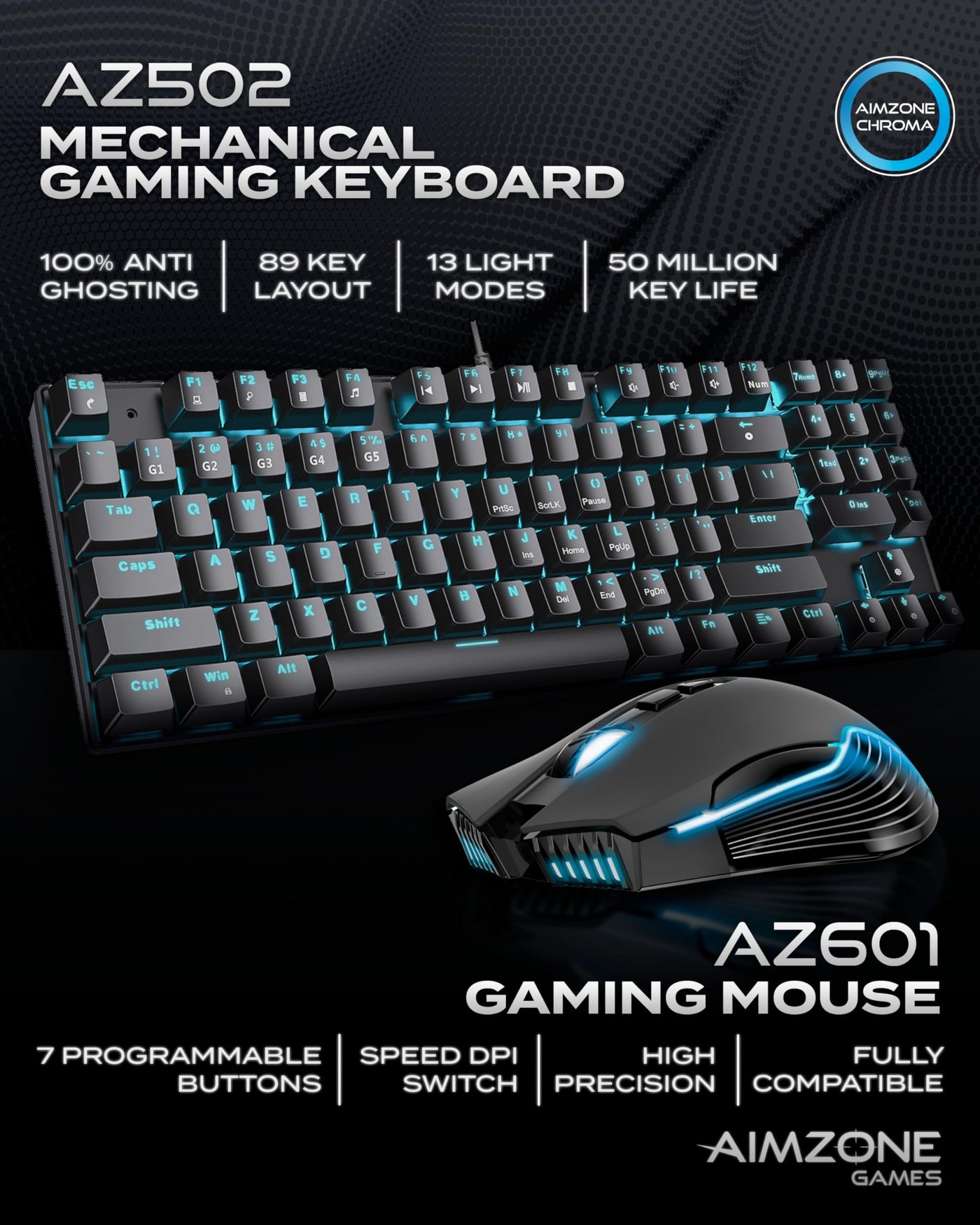 Aimzone Keyboard And Mouse, Wired Ergonomic Gaming Keyboard And Mouse Combo, 80% Mechanical Keyboard, 89 Multimedia Keys, 6400 D