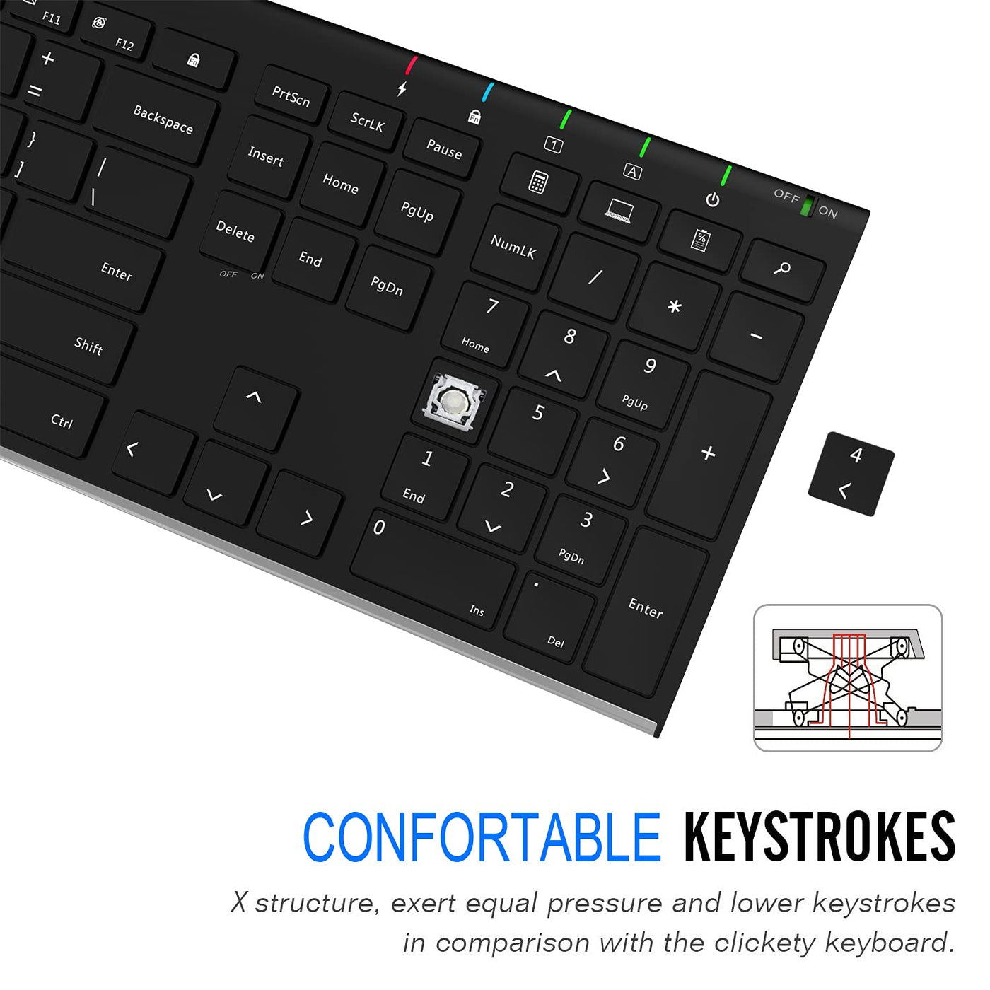 Industry Leading Ergonomic Design Stainless Steel Material Gives Heavy Duty Feeling And The Low-Profile Keys Offer Quite And Comfortable Typing. Easy Setup And Usejust Simply Insert The Nano Usb Receiver Into Your Computer Like Desktop Or Laptop, Then The Keyboard Can Be Used Instantly. No Need Driver.The Keyboard Will Work Up To 33 Feet Or 10 Meters.It Allow You To Gain Quick Access To Common Functions, Such As Volume Level, Playback Control, Copy Paste Text, And More. It Also Provides Arrow Keys, Number Pad With Slim And Compact Design. Comfortable, Quiet Typing The Whisper-Quiet, Low-Profile Keys Bring A Whole New Level Of Comfort To Your Fingertips. What'S More, Keep All Your Most-Used Functions And Media Controls Closer Than Ever Windows-Dedicated Hot Keys.The Construction Of This Scissors-Kick Keys Can Be Used More Than 3 Million Times Continuously. Rechargeable Battery Built-In Industry-High Rechargeable Li-Polymer Battery Provides 6-Month Use On A Single Charge. (Based On 2 Hours Non-Stop Use Per Day)