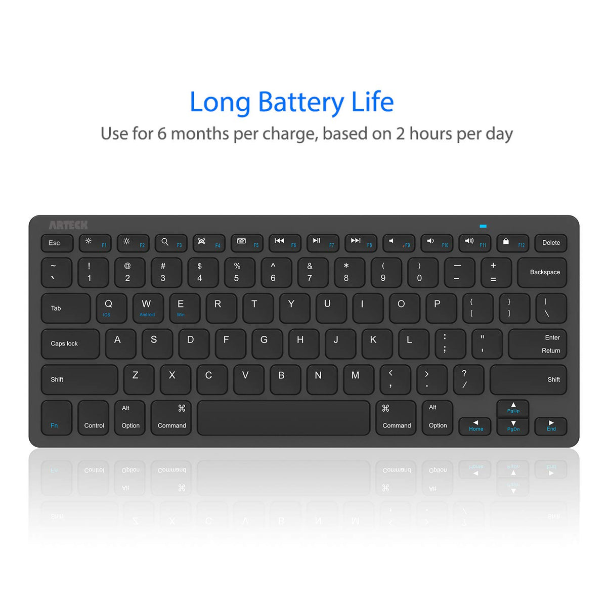 Specifications:Bluetooth Edition: Bluetooth 3.0 And Support Latest Bluetooth 5.0Dimensions: 285 X 120 X 6 Mm / 11.2 X 4.7 X 0.2 Inchbuttons: 78 Keys (Including 13 Ipad Hot Keys)Weight: 217G / 7.65 Ozoperating Range: Up To 10 Meters / 33 Feetthe Keyboard Is Made Of Superior Plastic.Cross Platform Compatiblefully Functional To All Four Major Operating System: Ios / Android / Macos / Windows, And Features System-Specific Function Keys For Each Operating Systems. Any Bluetooth Supported Devices Such As Laptop, Computer, Tablet, Smartphone Can Be Easily Paired And Gain Quick Access To Common Functions, Such As Volume Level, Playback Control, Copy Paste Text, And More. Support Devices Including: Apple Ipad 10.2 / Ipad Air / Ipad Mini / Ipad 9.7 Inch Ipad, Ipad Pro, Iphone, Iphone Pro, Iphone Mini Etc.Comfortable, Quiet Typingthe Whisper-Quiet, Low-Profile Keys Bring A Whole New Level Of Comfort To Your Fingertips. What'S More, Keep All Your Most-Used Functions And Media Controls Closer Than Ever Windows-Dedicated Hot Keys. The Construction Of This Scissors-Kick Keys Can Be Used More Than 3 Million Times Continuously.Long Battery Lifeenergy-Saving Design And Automatic Sleep Mode Allow Up To 4 Months Between Battery Changes. (Based On 2 Hours' Non-Stop Use Per Day) (2 X Aaa Batteries Included)Note:This Keyboard Will Automatically Go Into Power Saving Sleep Mode After 30 Mins Of Inactivity. Press Any Key And Wait 2-3 Seconds To Wake The Keyboard.