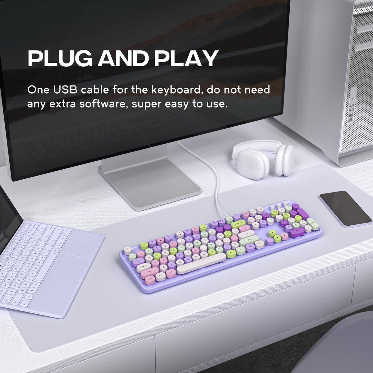 Atelus Wired Keyboard , Cute Appearance Is Specially Designed For Young People And Ladies, It Will Become A Good Partner For Office, School And Family! Retro Typewriter Keyboard Cute Round Keycaps, Crisp And Sweet Sound, Perfect Knocking Feel, Let You Find The Feeling Of A Retro Typewriter. And Its Detachable, Make The Keyboard Easy To Clean. Plug And Play Simply Connect Your Portable Keyboard And Computer With One Usb Cable, Without Any Software. Plus It Pairs Almost Instantly So You Can Get To Using Them In No Time! Power Saving: Powered By One Bulit-In Battery For The Keyboard, No More Continually Changing Or Recharging Batteries. Package Includes: Wired Keyboard * 1User Manual * 1