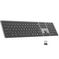 Ausdom Wireless Bluetooth Keyboard Full Size, Quiet Slim Multi Device Rechargeable Cordless Qwerty Keyboard With Number Pad, Low