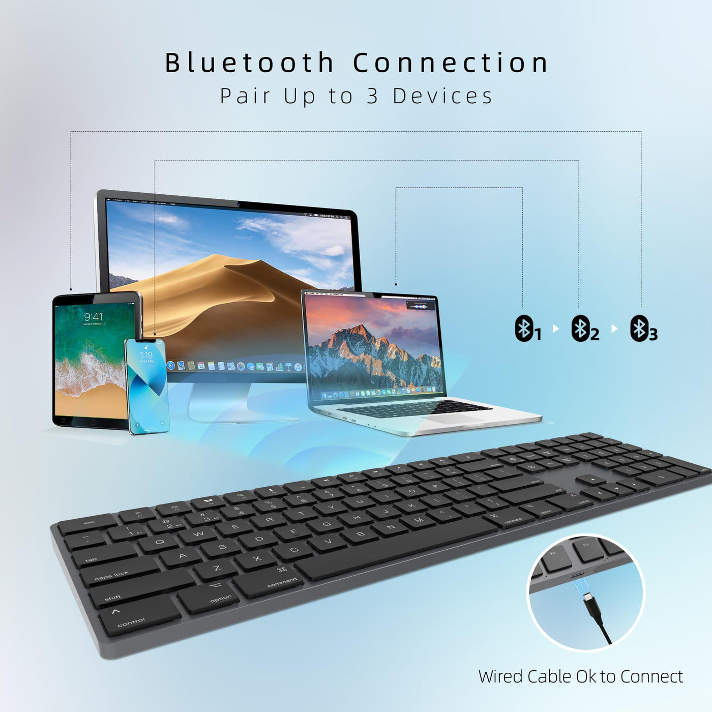 Powzan Bluetooth Aluminium Wireless Keyboard Is Best Device For Office And Home Use. It Features Slim, Quiet And Elegant Pc Keyboard , Providing Soft Touch Key Press. The Main Material Is High Quality Aluminum, Solid And Elegant. It Definitely Matches Your Apple Setup. Simple To Connect To Your Device With Bluetooth Technology , Easy To Use. It Can Connect To 3 Devices At The Same Time And You Can Enjoy The Quick And Efficient Switch Among 3 Different Device. No Worries About Any Delay.