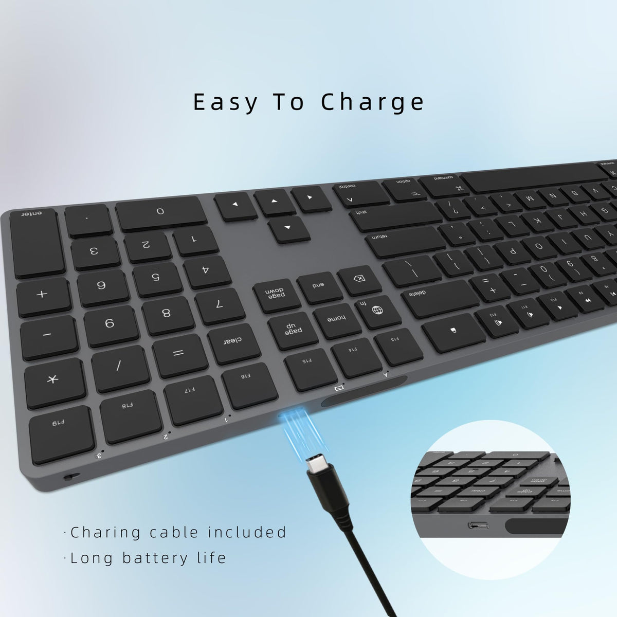 Bluetooth Slim Keyboard For Mac, Aluminum Rechargeable Keyboard Wireless, Low Profile Silent Flat Key Compatible With Apple Imac