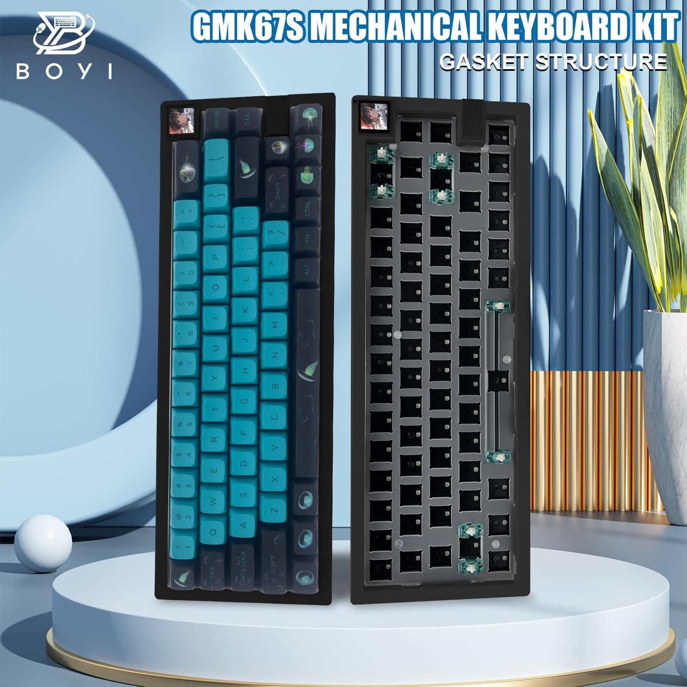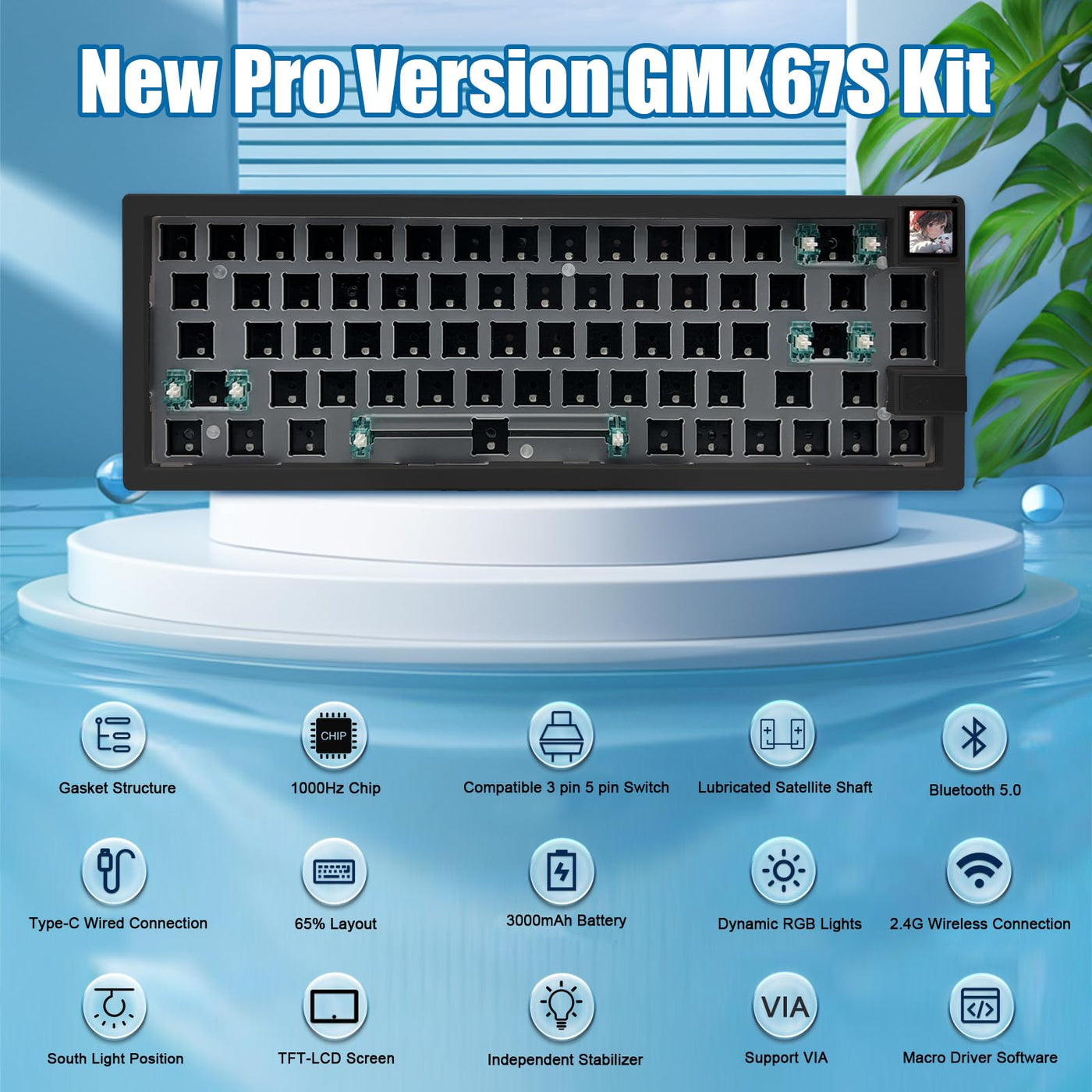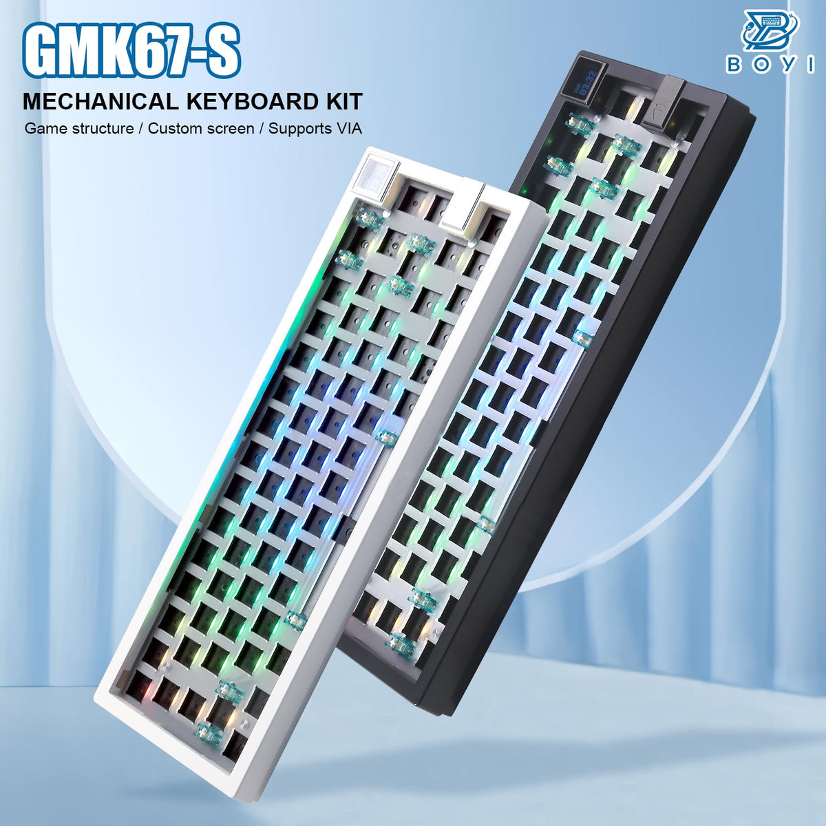 Boyi Gmk67S 65% Keyboard Kit,Hot Swappable Bt5.0/2.4G/Type C Tri Mode Wireless Rgb Mechanical Keyboard Gasket Mounted Kit,Custom
