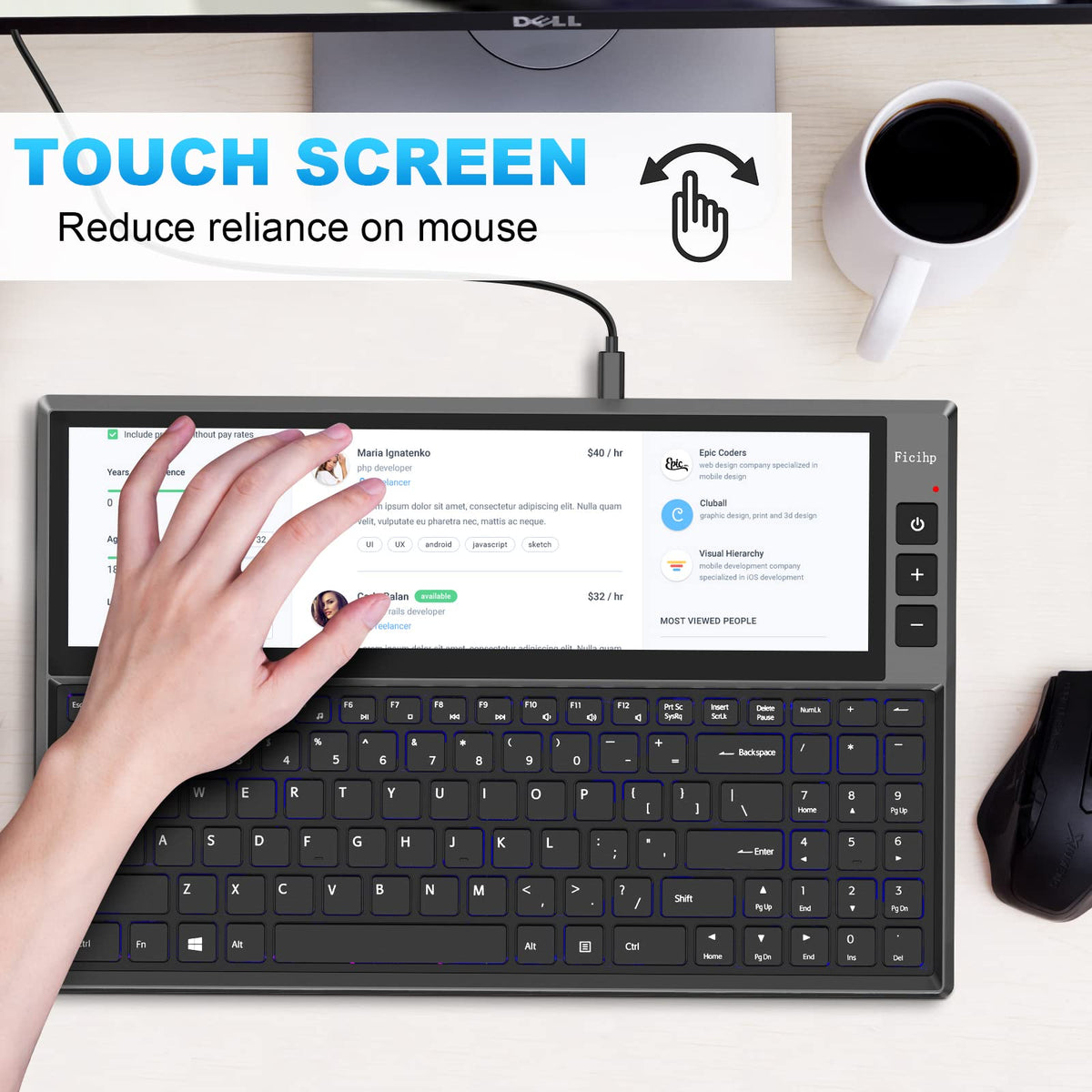 Ficihp K1 Usb Keyboard, Multi-Device Built-In 12.6'' Touchscreen, Ultra-Slim Keys Rgb Led Backlit For Computer/Desktop/Pc/Laptop/And Windows 10/8 / 7 / Mac Os/Android Dimensions And Weight: Height: 357 Mm / 14.1 In Width: 232.5 Mm / 9.15 In Depth: 26 Mm / 1.02 In Weight: 1.03 Kg / 2.27 Lb Whats In The Box: Built-In 12.6'' Touchscreen K1 Keyboard 1 X Storage Bag 1 X Instruction 1 X Usb-C To Usb-C Cable 1 X Usb-C To Hd+2Usba Cable Functional Performance: Multifunctional Keyboard: Multifunctional Keyboard With 12.6 Inches Touchscreen Will Empower You With An Integrated Keystroke And Touchscreen User Experience That Also Supports Multi-Screen Display Work. Provides Different Types Of Backlight Settings With Adjustable Brightness. No Download Or Companion Software Is Required To Get This Keyboard Running. The 98-Key Scissor Keyboard Has A Smooth Feel And Mute Buttons, Bringing You A Different Experience. Attention: - Please Tear Off The Protective Film On The Surface Of The Screen Before Use. -The Power Supply Required By This Product Is The Computer Type-C Interface Or Usb Interface. When The Product Screen Is Not Bright Or The Keyboard Does Not Start, Please Confirm The Computer Output Interface Can Provide 4W Power 5V/800Ma) -Pay Attention To Avoid Excessive Humidity And Excessive Dust, So As To Avoid Circuit Corrosion And Cause Failure. -When You Stop Using The Equipment, Please Disconnect The Power Supply In Time.