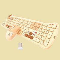 Cute Cat 2.4G Usb Wireless Keyboard And Mouse Combo, Silent Keys, Candy Colors, Compatible With Notebook, Pc (Milktea 110Keys)