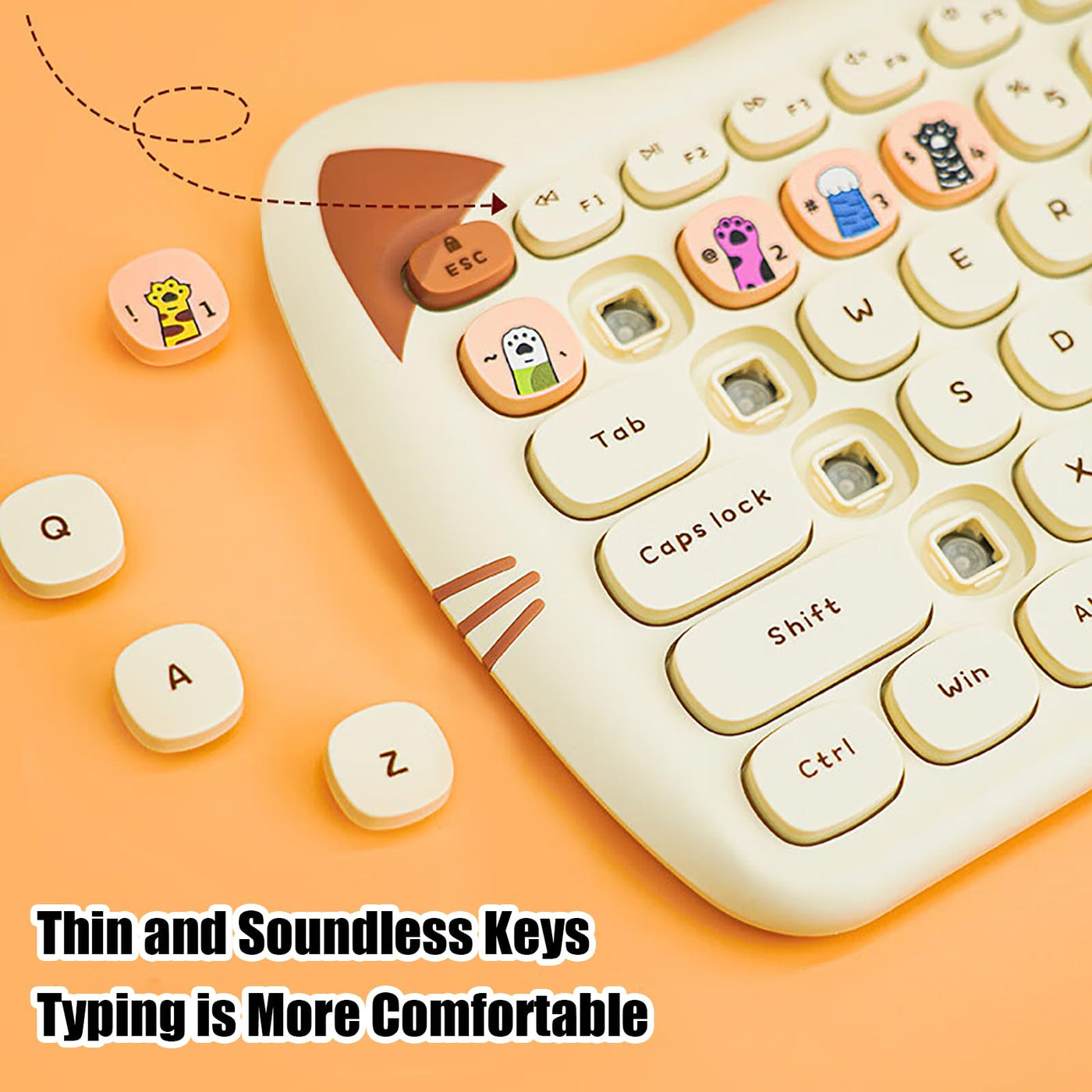 Cute Cat 2.4G Usb Wireless Keyboard And Mouse Combo, Silent Keys, Candy Colors, Compatible With Notebook, Pc