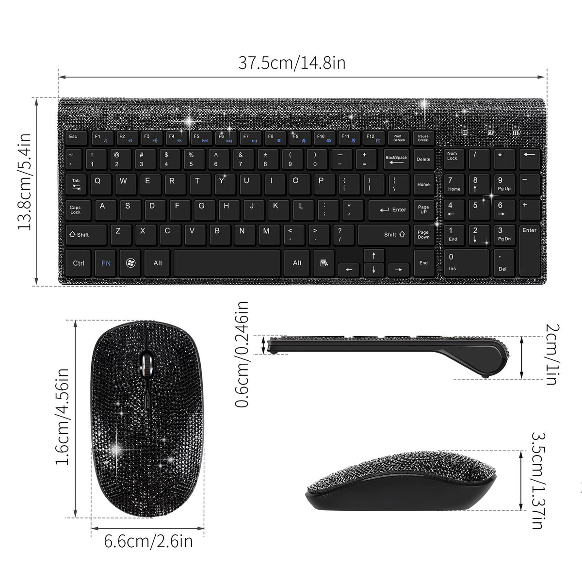 Dazzling Luxury Keyboard And Mouse Wireless, Sparkly Bling Rhinestone Wireless Mouse And Keyboard Gift Set (Black)