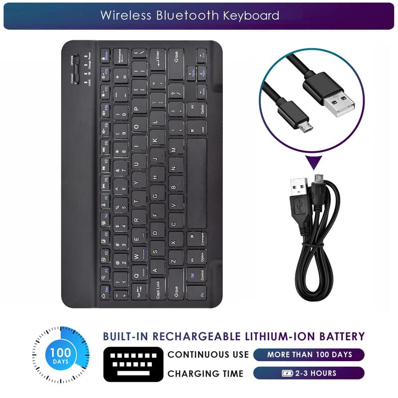 Detuosi Universal 10 Inch Wireless Keyboard, (0.23 Inch) Ultrathin Slim Lightweight Travel Portable, 10.1'' Multi Device Wireles