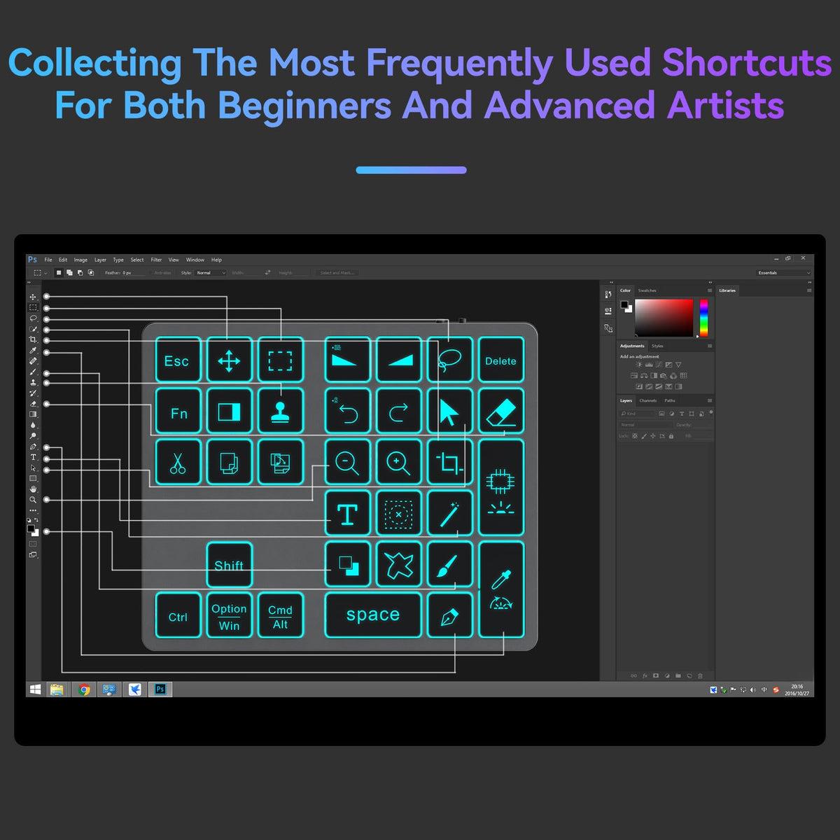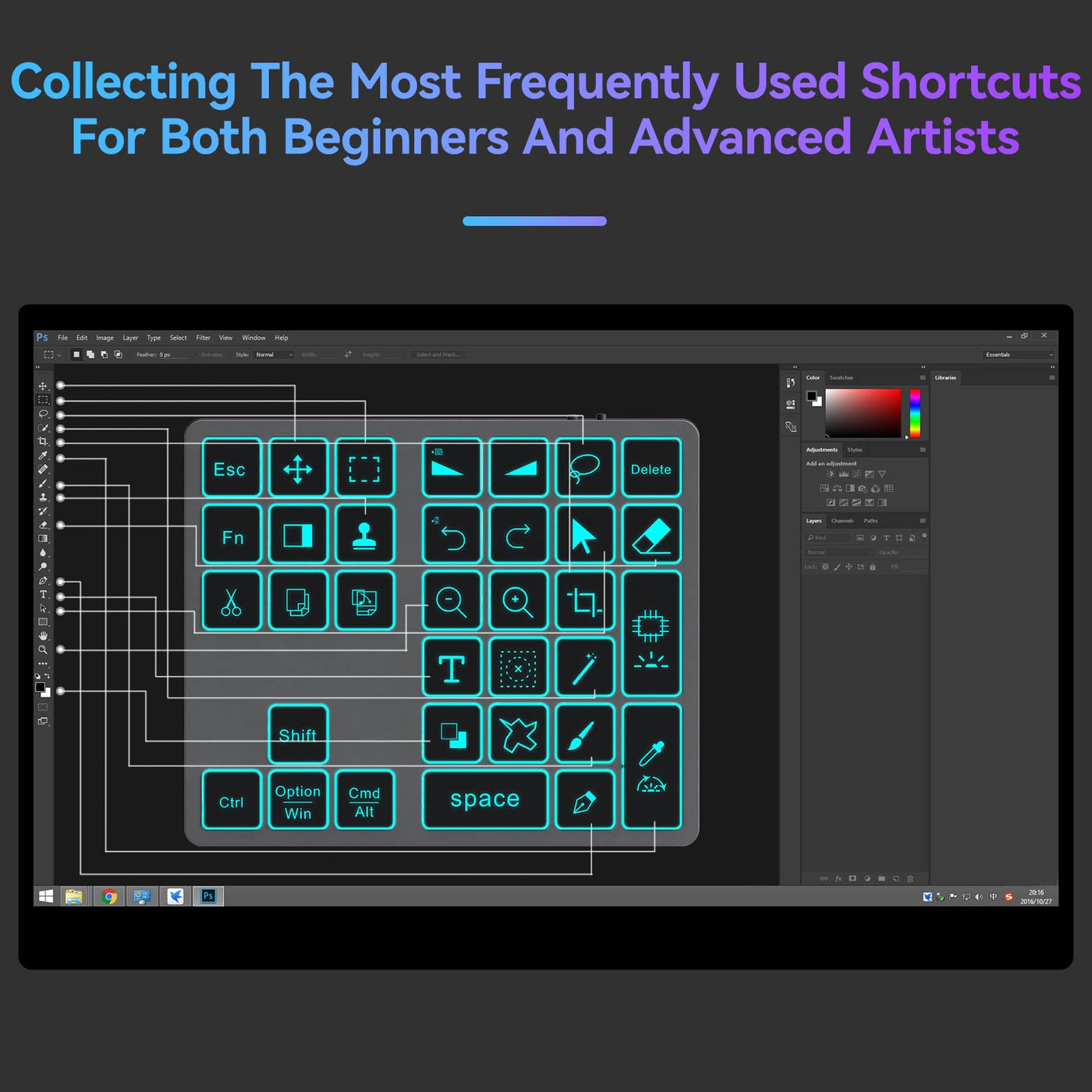 Doohoeek Bluetooth Shortcut Keyboard For Adobe Photoshop For Pc Computer, Desktop, Ipad & Macbook, Ps Shortcut Keypad Rechargeable With 7-Color Backlit Key For Macos, Ios & Windows