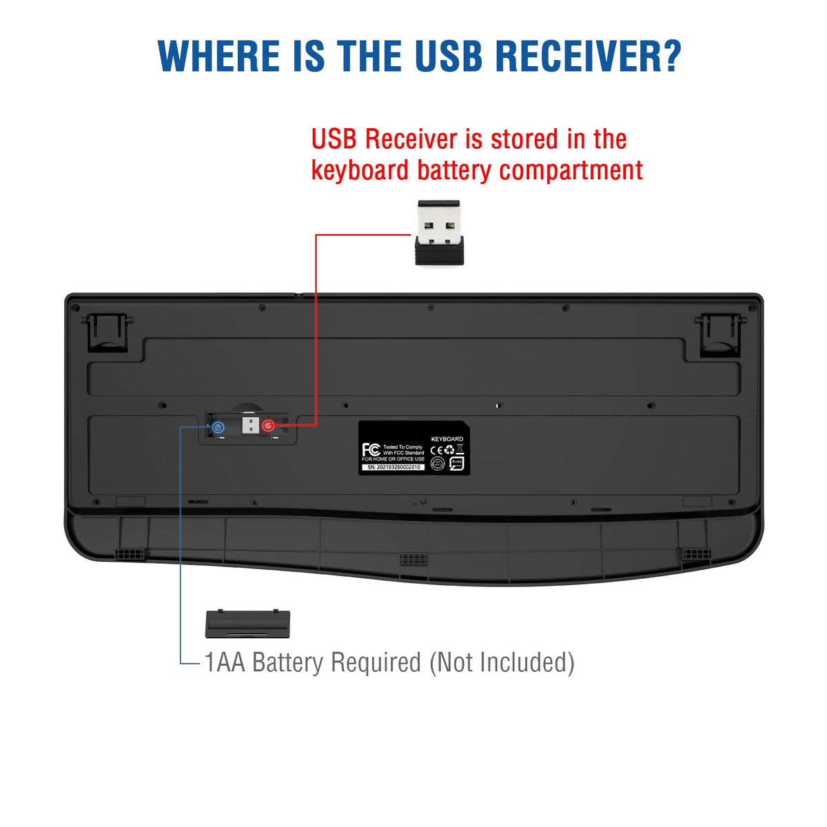 Edjo Wireless Keyboard, 2.4G Ergonomic Full Size Wireless Computer Keyboard With Wrist Rest For Windows, Mac Os Desktop/Laptop/P