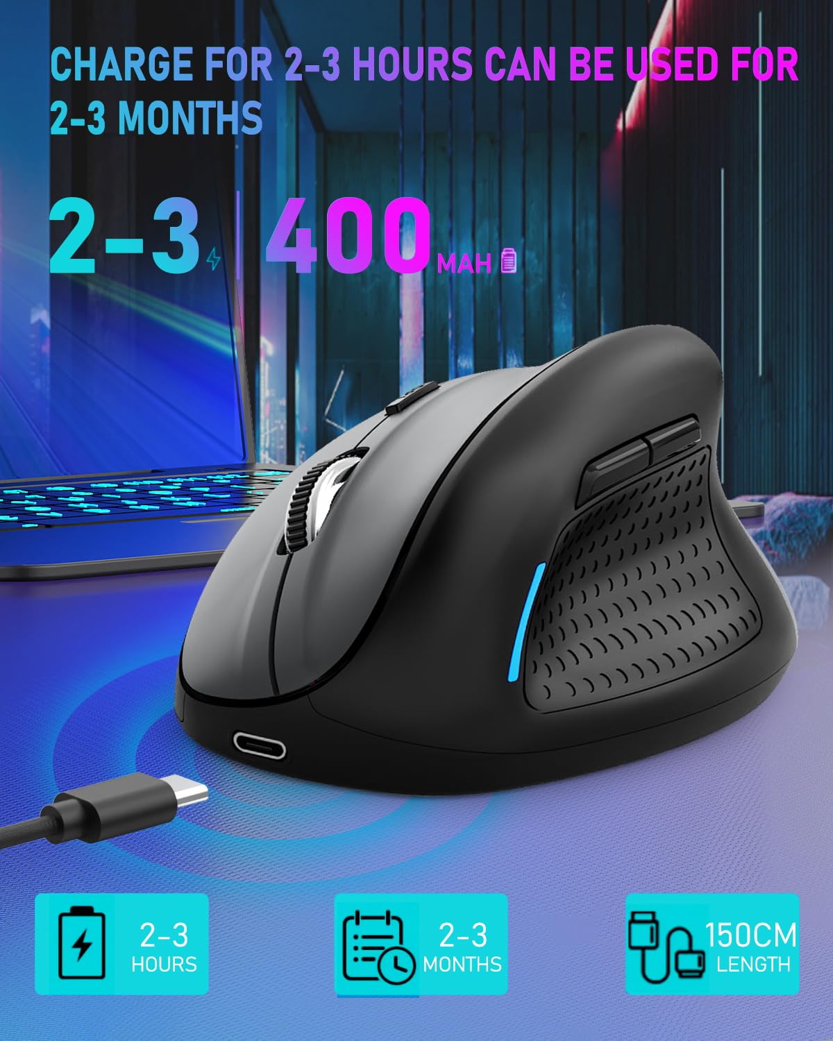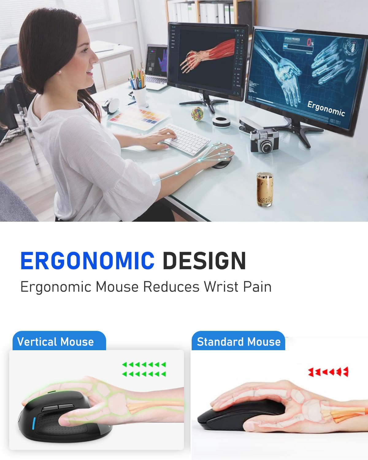 Ergonomic Vertical Mouse Is Meticulously Crafted With A Unique Vertical Shape That Reduces Wrist And Forearm Strain, Delivering A Comfortable And Natural Grip. It Promotes A More Ergonomic Posture, Alleviating Discomfort And Enhancing Overall Comfort.