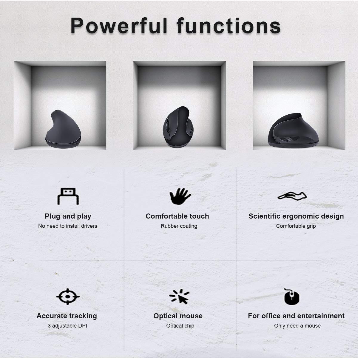 Ergonomic Wireless Mouse,Vertical Mouse 2.4Ghz Optical Mice With Adjustable Dpi For Small Hands,Black
