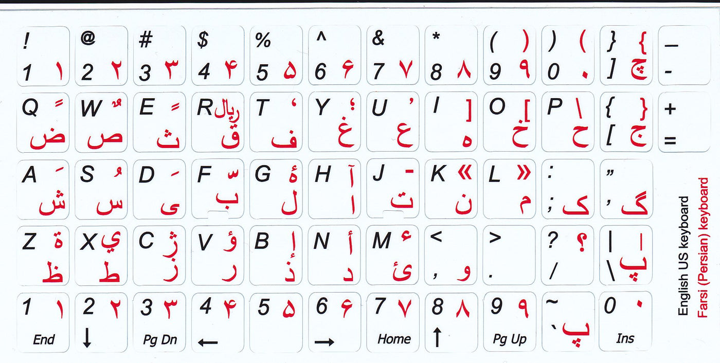 Farsi Persian English Keyboard Sticker Non Transparent White For Computer Stickers Are Made With Typographical Method On High-Quality Matt Vinyl, Thickness - 80Mkn. You Can Use Stickers On Different Keyboards On Desktops, Laptops And Notebooks ... Etc.( You Can Use Our Pictures And