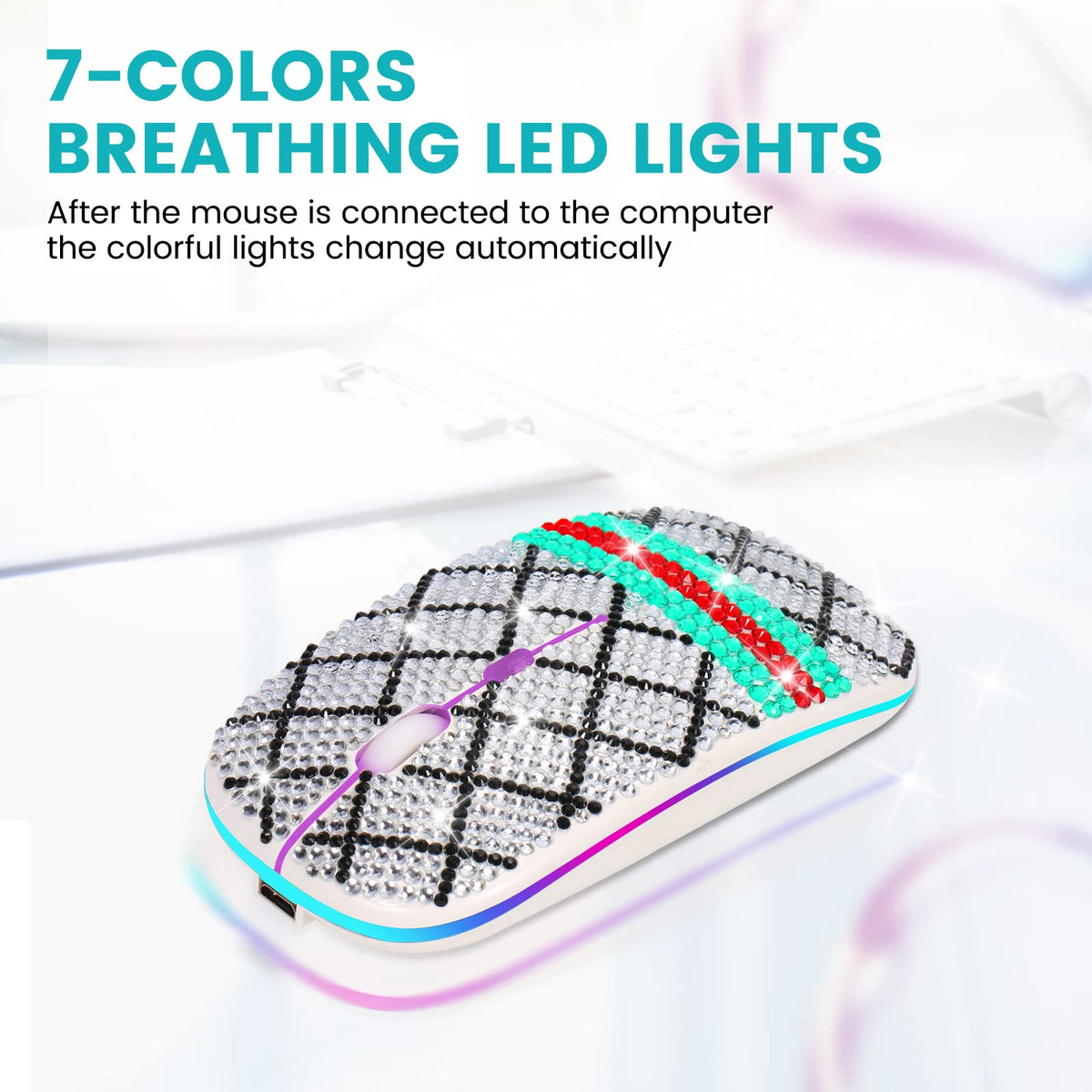 Greshare Wireless Mouse,2.4Ghz Optical Silent Mice With Wireless Bluetooth Dual Mode Connection Rgb Colorful Luminous For Comput