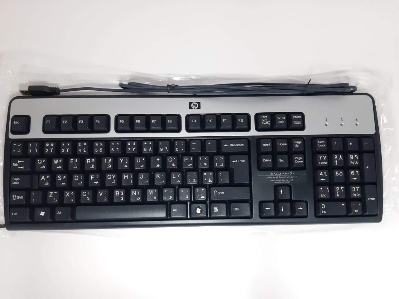 HP KU 0316 USB Wired Keyboard 104 Keys Black and Silver Part# 434821 002