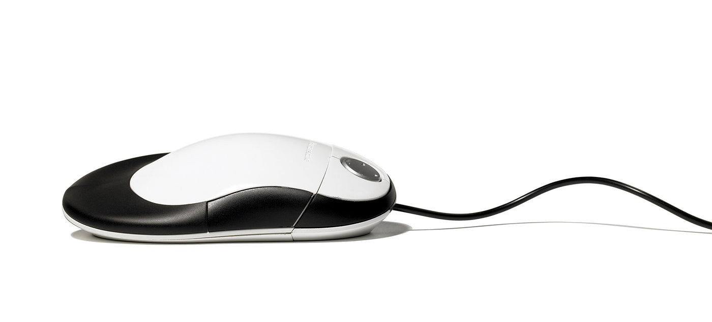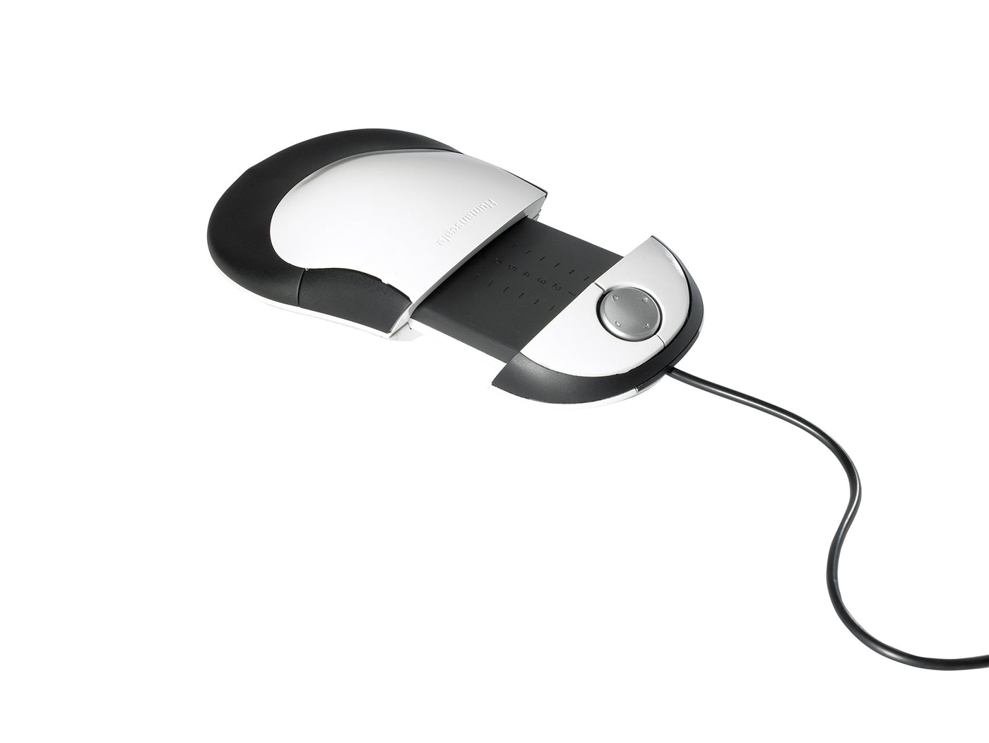 Switchmouse, adjustable length, navigation dish, 3 programmable buttons, Black with White trim.