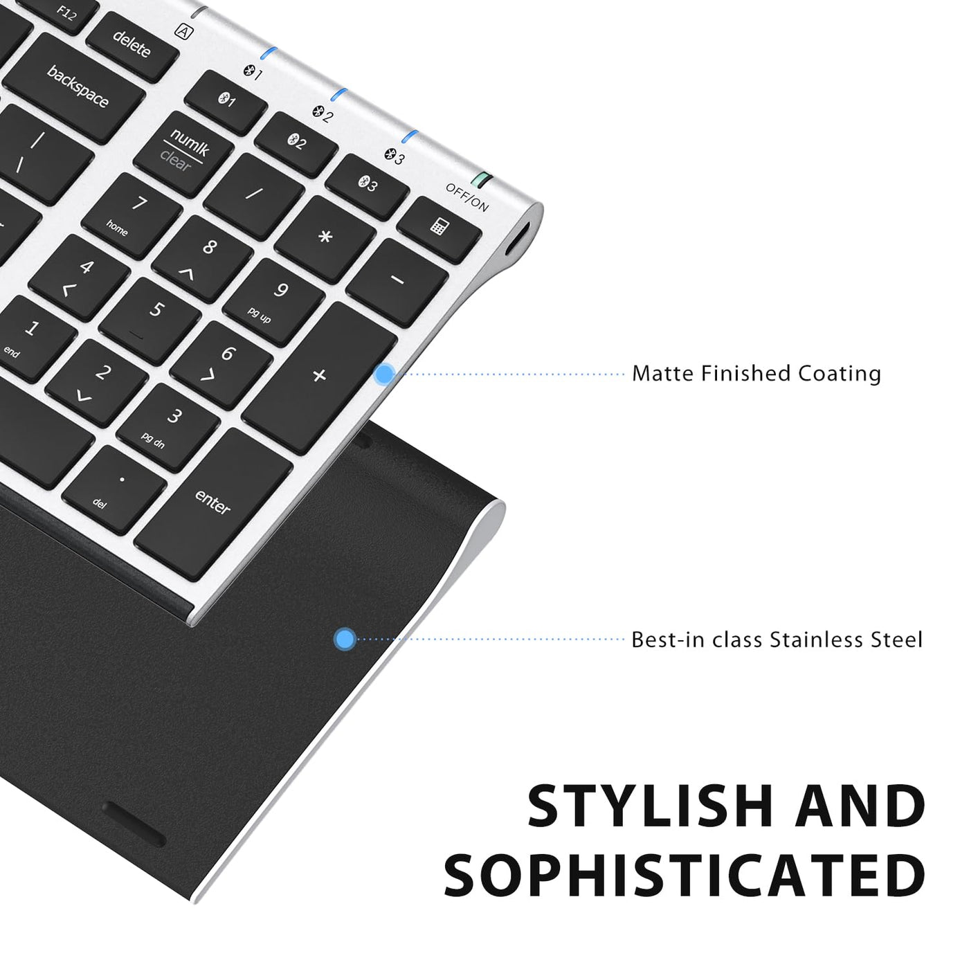 Iclever Bk10 Bluetooth Keyboard, Multi Device Keyboard Rechargeable Bluetooth 5.1 With Number Pad Ergonomic Design Full Size Sta