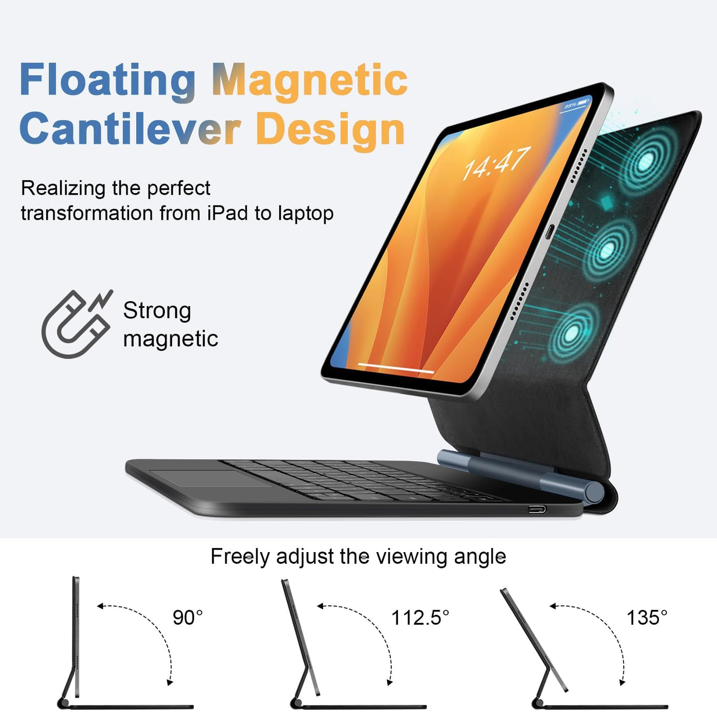 Keyboard For Ipad Air 11 Inch (M2) 2024, Magic Keyboard For Ipad Pro 11 Inch (4Th/3Rd/2Nd/1St), Keyboard Case For Ipad Air 10.9 Inch(5Th/4Th), Floating Cantilever Stand With Multi-Touch Trackpad