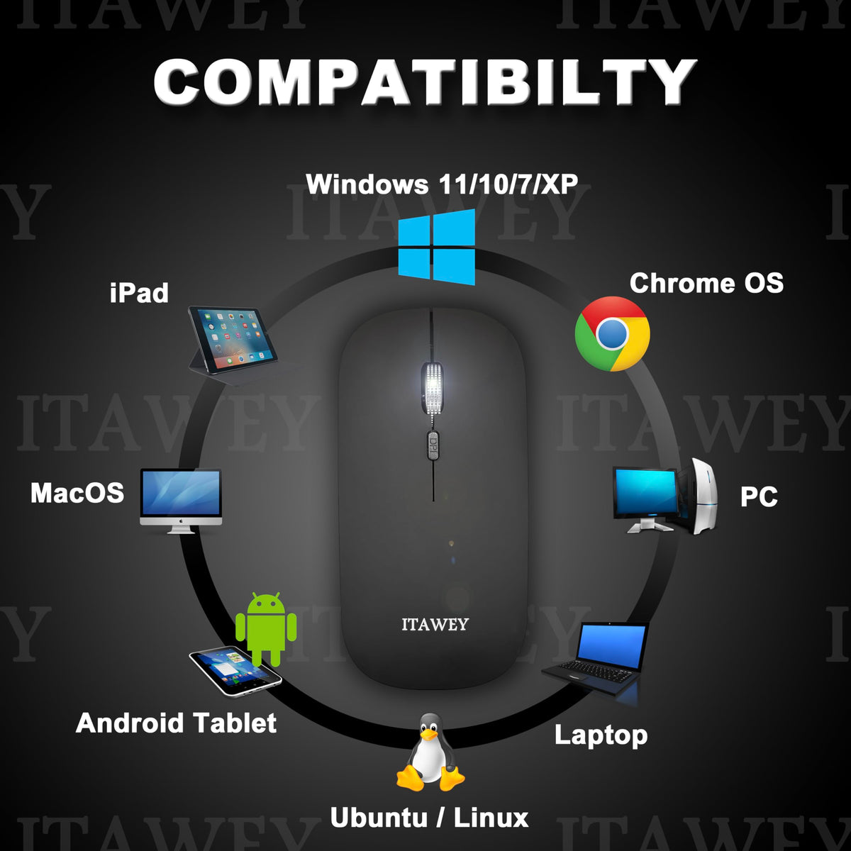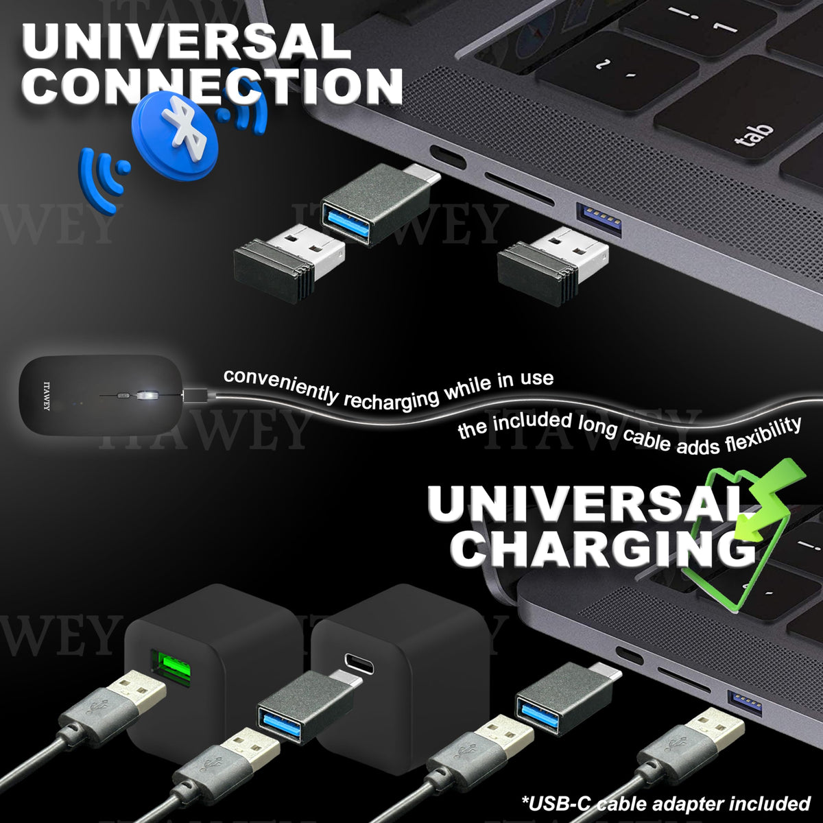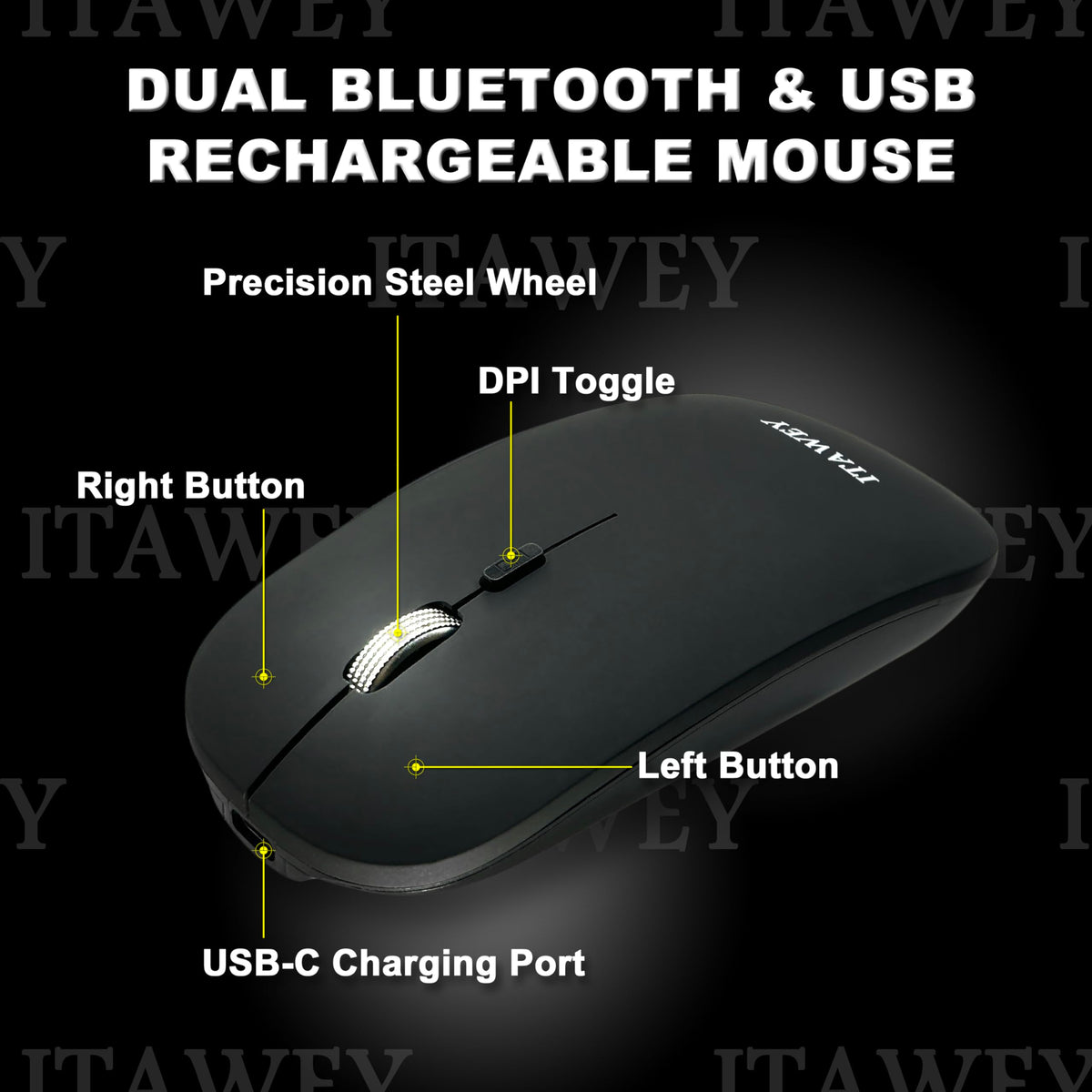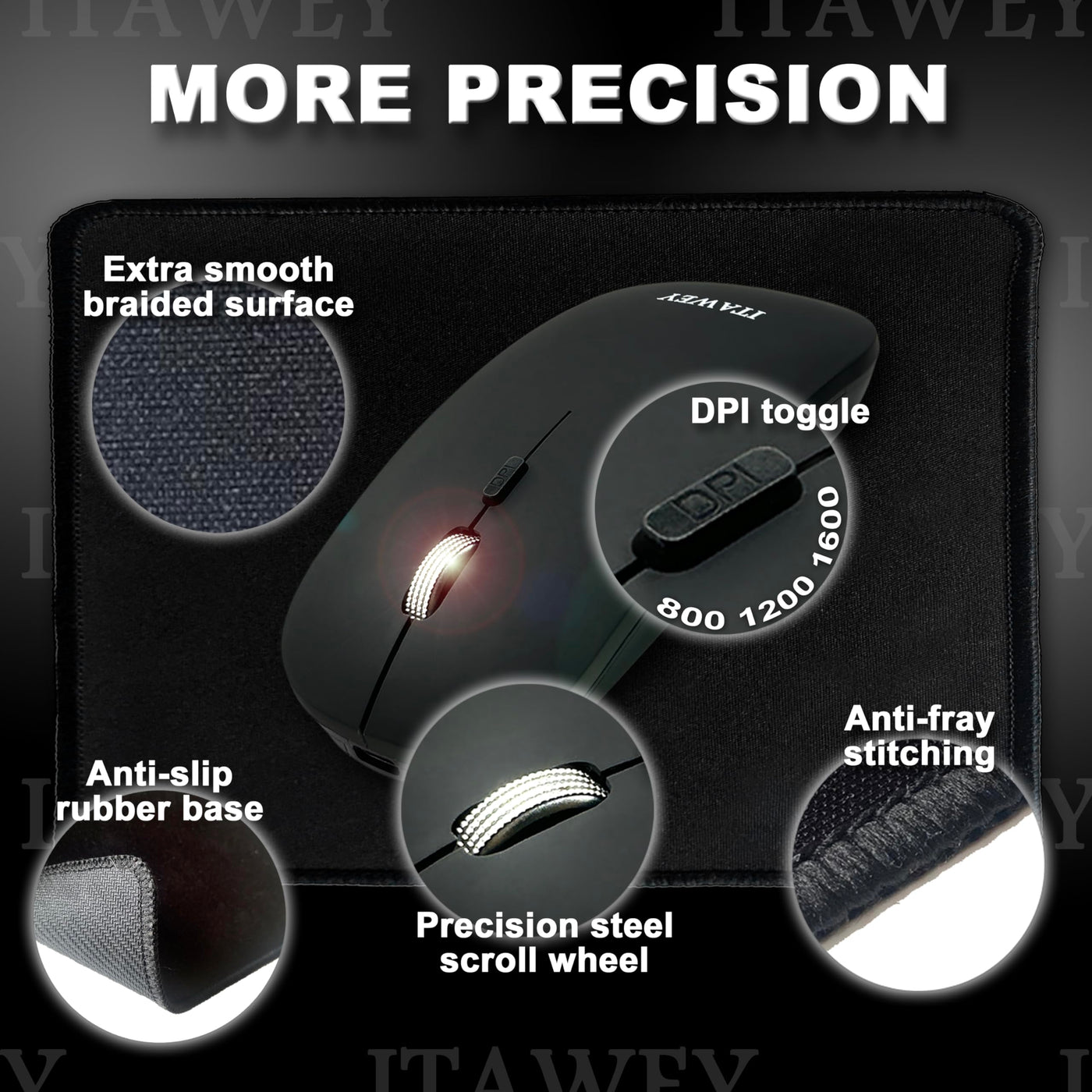 Itawey Wireless Mouse And Pad Combo, Dual Mode Bluetooth 5.2 And Usb Receiver 2.4G, Rechargeable, Quiet Clicks, Compact, 1600 Dp