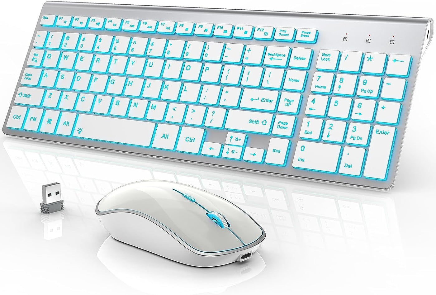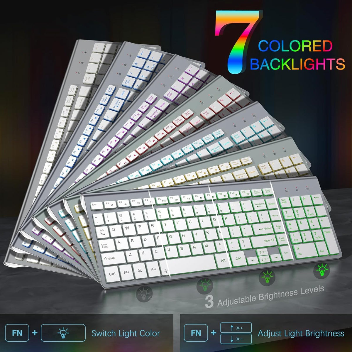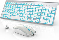 J Joyaccess Wireless Keyboard And Mouse Combo With 7 Backlit Options,Quiet Light Up Keys,Type C Rechargeable,Sleep Mode 2.4G Sli