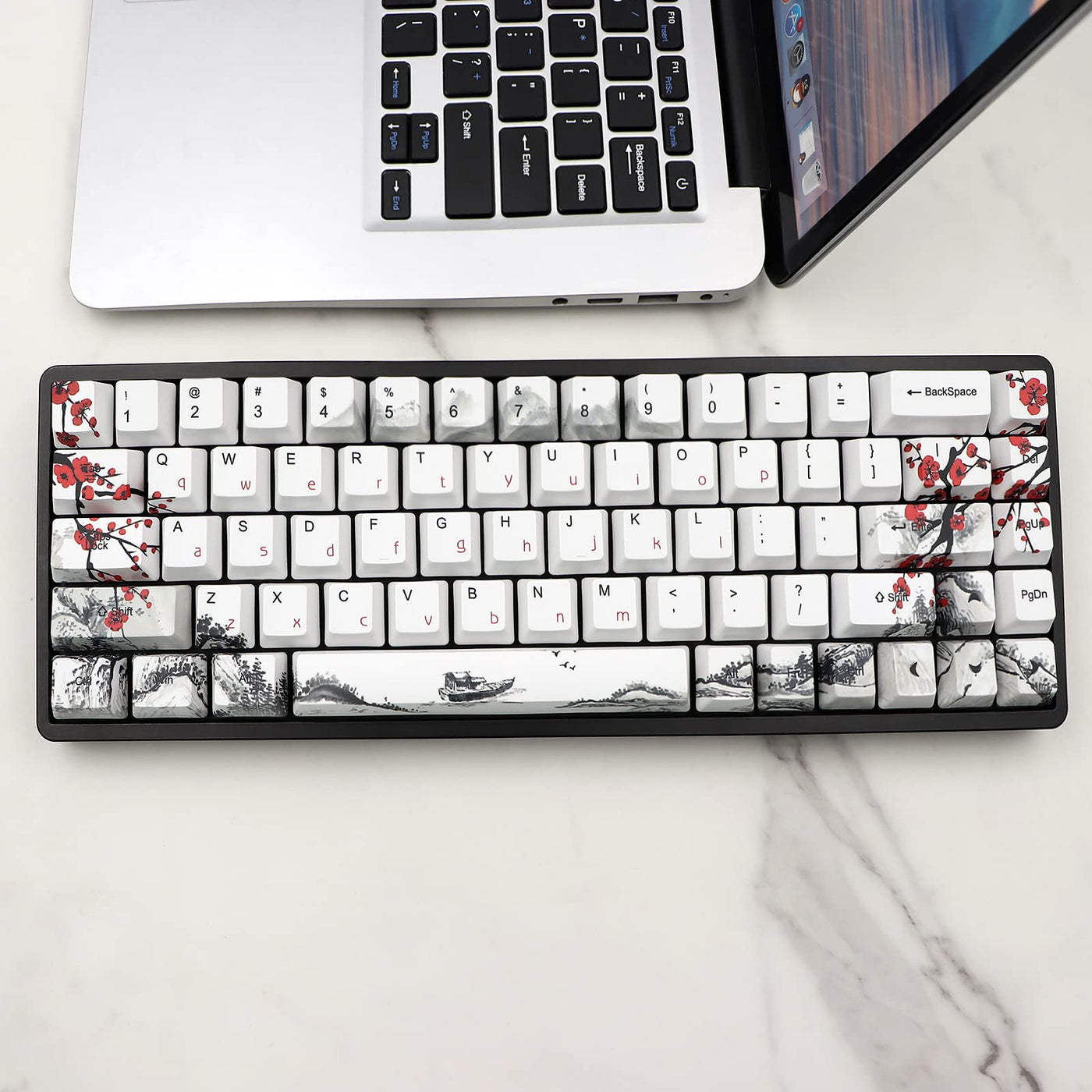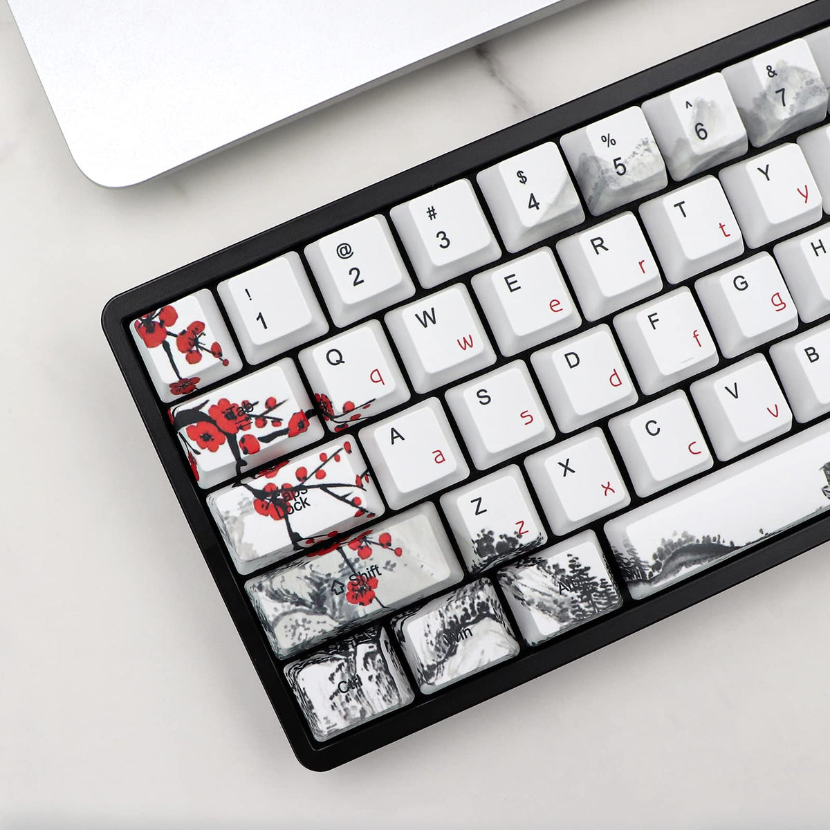 Jsjt Custom Keycap Keycaps 65 Percent, Plum Blossom Keycaps Pbt Oem Profile Keycaps 68 Key Set With Keycap Puller Suitable For G