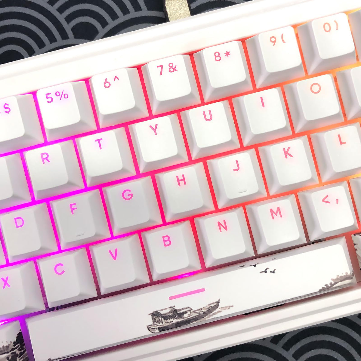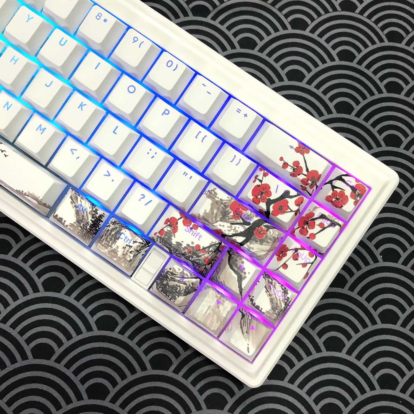 JSJT PBT Keycaps - 129 Keys Double Shot Shine Through Plum Blossom Custom Keycap Set for Cherry Gateron MX Mechanical Keyboards
