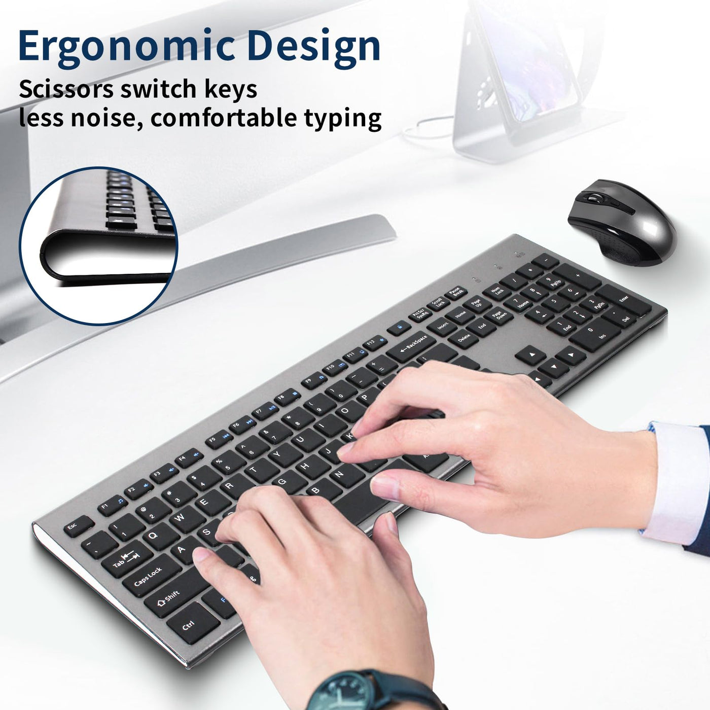 Kangrui Wireless Keyboard And Mouse Combo 17 Inch Full Size 2.4G Usb Ergonomic Slim Silent Wireless Keyboard And Silent Wireless