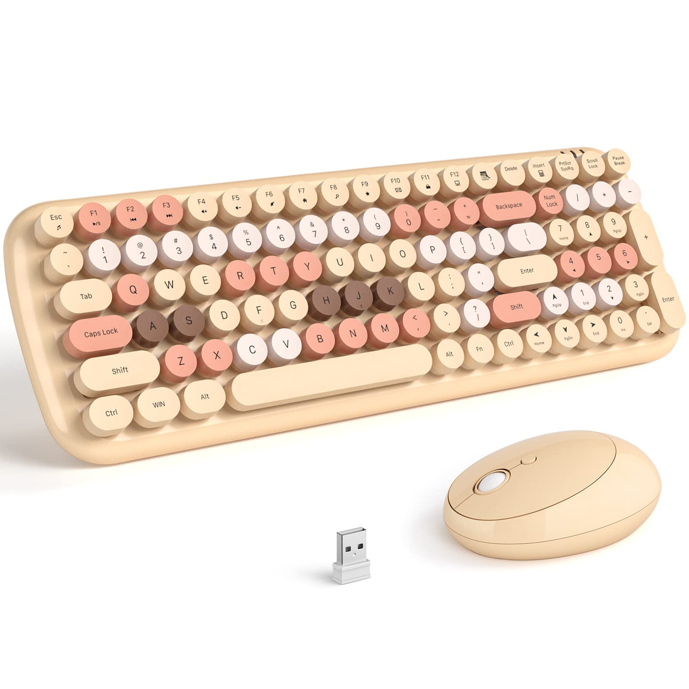 Knowsqt Wireless Keyboard And Mouse Combo, Light Milktea 100 Keys 2.4 Ghz Round Keycap Typewriter Keyboards, Usb Receiver Plug A