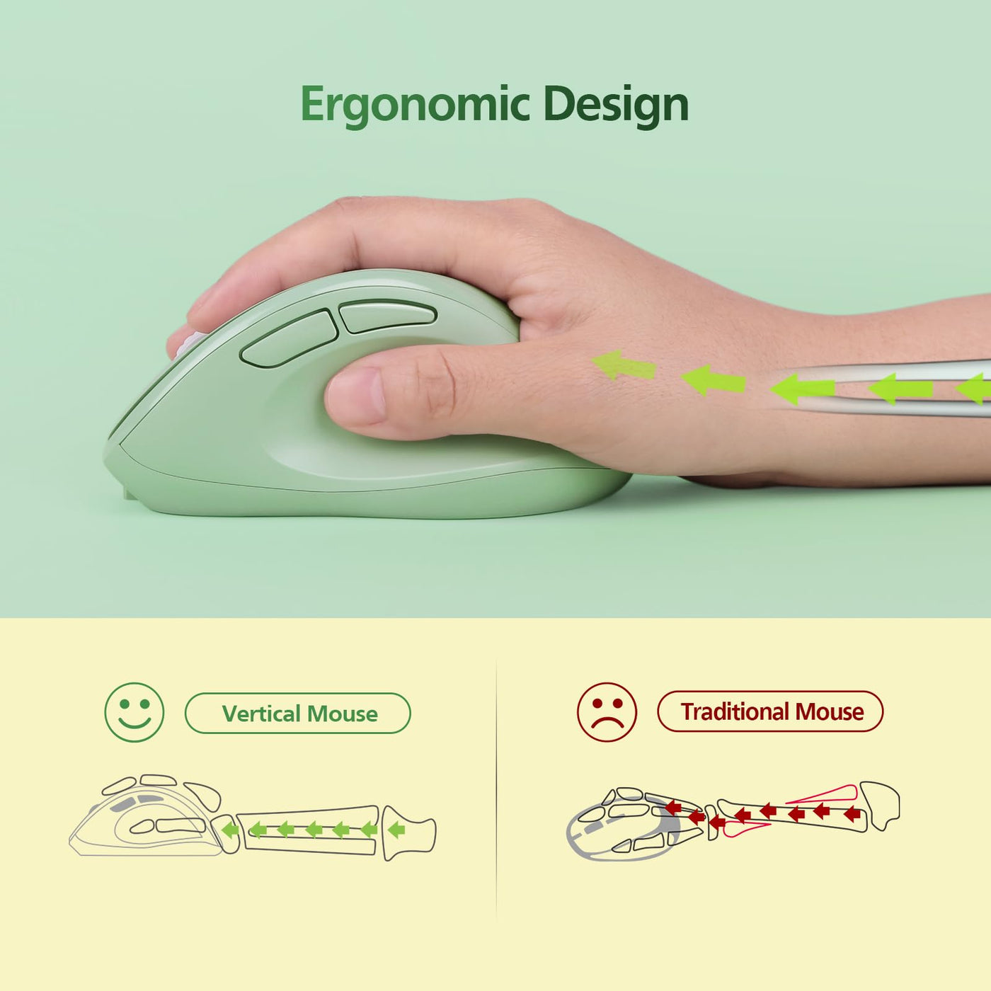 Micropack Vertical Mouse Multi Device, 3 Mode Bluetooth 5.0 & 3.0 Mouse 2.4G Wireless Mouse With Adjustable Dpi & Silent Click F