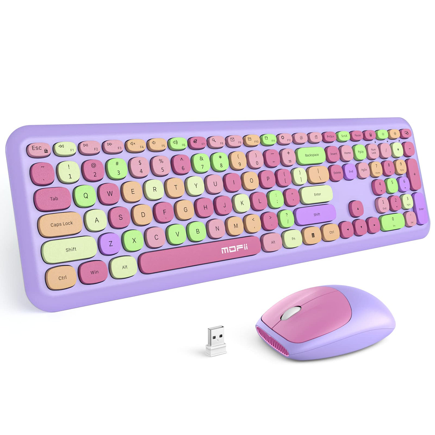 Wireless Keyboard And Mouse Combo --- Your Perfect Office/Home/School/Travel Partnerentire Full-Size Keyboardcute Keyboard With 110 Keys Includes Media Keys, Functional Keys And Numeral Keys, Totally Conforming To Your Typing Habits.Keycaps In Good Resiliencecolorful Stylish Keys Offer Excellent And Comfortable Typing Resilience, No Keys Stuck Or Linking, Ensuring Smooth Typing Experience.6 Degree Ergonomic Slopethere Are Stable Stands At Back Of This Computer Keyboard, 6Tilt Angle For The Great Typing Position Ergonomic Design, Scientific Layout Keycaps Offer Smoother Touch And The Perfect Balance For Your Pleasant Typing.Color-Matched Wireless Mousequiet, Responsive And Reliable, With A Cute Compact Design That Makes It Easy To Bring The Mouse With You Wherever You Need It. Perfect For Office Or Home Use. For Students Or Travelers On The Go Who Need Reliable, Hassle-Free Partner. Wide Compatibilitycompatible With All Kinds Of Pc Devices And Os, Such As Desktop, Computer, Laptop, Pc, Windows Xp/Vista/7/8/10, Mac And So On.Warm Tips1.The Keyboard Is Powered By 1*Aaa Battery And The Mouse Is Powered By 1*Aa Battery.2.Please Take Out The Batteries When You Do Not Use Devices For A Long Time.3.The 33Ft Longest Wireless Range Will Be Shortened If There Are Any Obstacles.Specificationkeyboard Size: 443*138*29 Mm (17.44*5.43*1.14 Inches)Mouse Size: 104*69*35 Mm (4.09*2.72*1.38 Inches)Total Net Weight: 20.81Oz/590G (Batteries Not Included)Package Contents 1 X Wireless Keyboard 1 X Wireless Mouse 1 X Usb Receiver 1 X User Manual