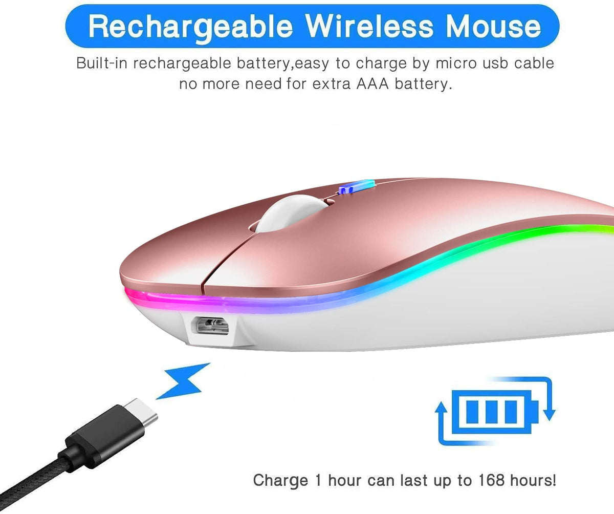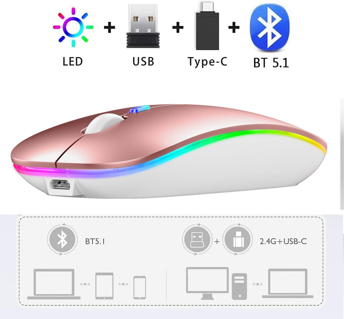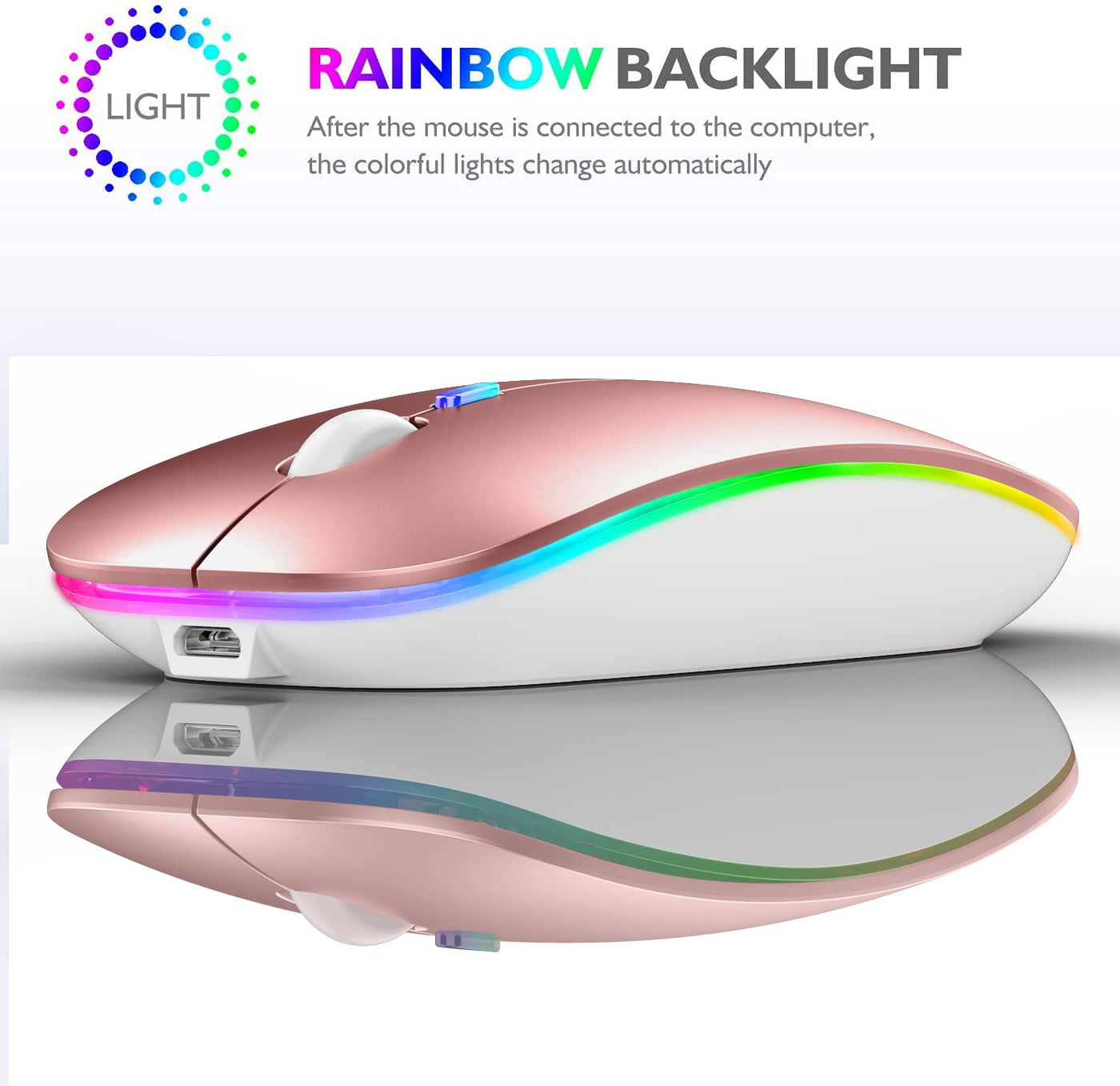 Neises Wireless Bluetooth Mouse, Rose Gold, 7 Color Led, Adjustable Dpi, Built In Battery, Compatible With Macbook Pro/Air/Imac/Ios Devices
