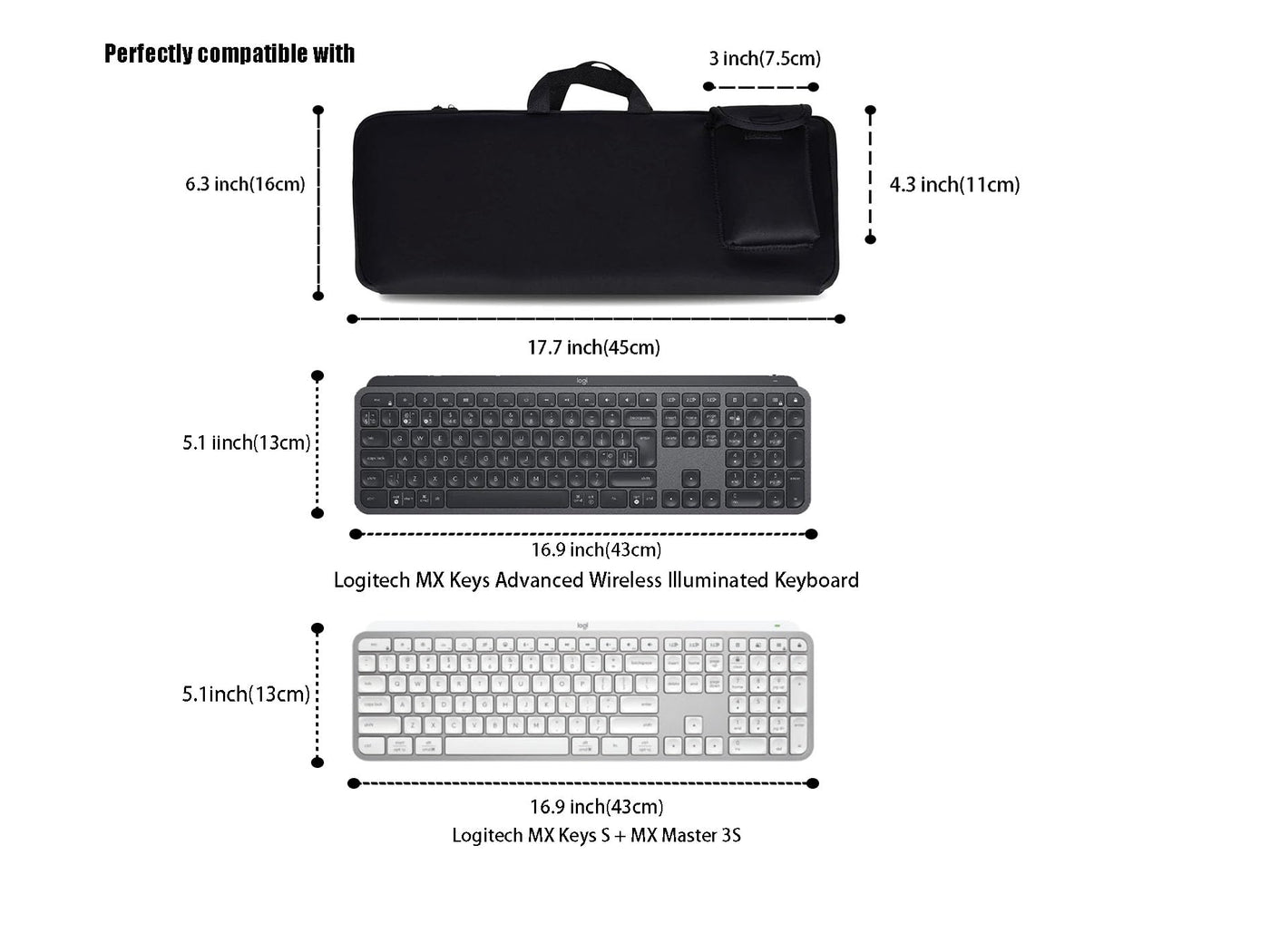 Nuenss-Ror Wireless Keyboard Mouse Sleeve Travel Case Is Ideal For Storing Your Keyboard At Home Or When Travelling. Vantage: 1.The Wireless Keyboard Mouse Sleeve Travel Case Is Water And Dust Resistant And Resists Damage From Scratches,Crushes And Accidental Drops For Longer Life And Aesthetics. 2.Machine Washable Is Supported And Guaranteed Not To Fade And Crease After Cleaning! Perfectly Compatible With: Logitech Mx Keys/Mx Keys S Advanced Wireless Illuminated Keyboard Logitech Mx Keys S + Mx Master 3S Wireless Keyboard Material: High-Grade Waterproof Neoprene Dimension:(L X W) 45 16Cm (17.7 6.3 Inch). Mouse Bag Size: (L W)11 7.5Cm (4.3 5.1Inch) Packing List: Wireless Keyboard Sleeve Travel Case 1
