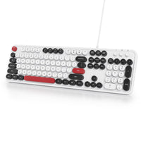 Owpkeenthy Wired Cute Keyboard, Plug And Play Usb Retro Round Key Typewriter Keyboard, Full Size Wired Quiet Keyboard With Folda