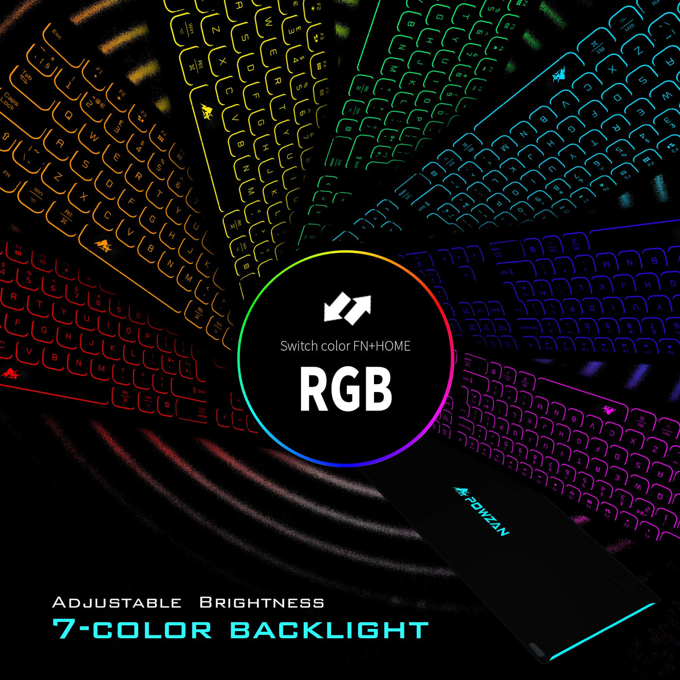 ? Ultra Quiet Scissor Switch ? Work Or Play Without Disturbing Those Around You At Home Or Office. Scissors Key Construction Offers You A Fast Typing Experience. Scissors Key Travel Distance Is Short, So It Provides The Quiet &Amp; Soft Hand Feel. ? Elegant Aluminium Topcase ? The Top Section Of It Is Made From Aluminum Which Looks Fantastic And Is Perfectly Smooth And Rounded On The Corners. It Is Steady And Look More Elegant At Your Desk. ? Amazing Backlit On Top &Amp; Bottom ? It Has 7-Color Option And 3-Level Brightness Adjustment Backlit In Addition, You Will Surprise That Logo And Stripe On The Bottom Are Illuminated. We Care The Detail, Even The Bottom Look Gorgeous. ? Best Customer Service ?Powzan Promises Provide Best Customer Service. If For Any Reason You&Rsquo;Re Not Completely Satisfied, We&Rsquo;Ll Refund Your 100% Money. Package Includes: 1 X Keyboard 1 X User Manual 1 X Keyboard Cover (Free) &Nbsp;So What Are You Waiting For? Click The&Nbsp;Add&Nbsp;To&Nbsp;Cart&Nbsp;Button To&Nbsp;Order&Nbsp;It&Nbsp;Now. &Nbsp;? Specification ?Interface:Usb Wiredlife Cycle:5 Millionbacklit:7 Single Color / Breathing / Off Optiondimensions:17.3 X 5 X 0.6 Incable Length:5.6Ft (1.7M)Operating System Supported : Windows 2000 / Xp / 7 / 8 / 10 / Vista , Mac Os &Nbsp;Note: *Please Read The Manual Before Use. *For Better Typing Experience, We Recommend You Remove Silicone Keyboard Cover While Typing. The Cover Could Be Placed On When The Keyboard Is Not In Use To Keep Out Dust, Spills And Other Debris.