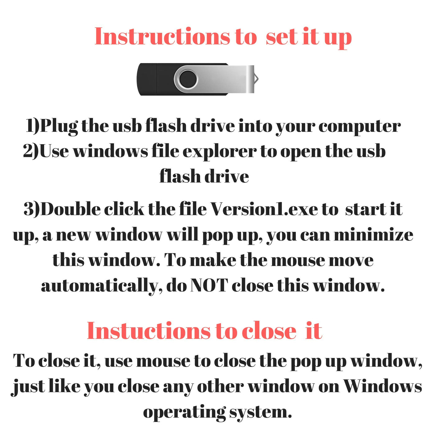 Qualitrustys New, Unique Software Solution Makes Your Computer Mouse Move Automatically When You'Re Not At Your Computer. This Mouse Mover Is A Foolproof Solution. Whether You'Re Incessantly Tired Of Keeping Your Laptop Awake For On-Call Meetings, Or You'D Simply Like A Way To Watch Videos Without Flicking Your Mouse Every Five Seconds, We'Ve Got You Covered. Stress Is A Large Part Of Our Lives, And We'Re Committed To Reducing It. To Satisfy All Your Demands, We'Ve Made This Device Easy To Carry Around And Effortless To Grasp. Plus, It Can Fit Nearly All Your Purses And Bags! The 16 Gigabyte Drive Also Has Enough Space For You To Store All Your Own Files! Because The Developed, Fool-Proof Software Takes Up Negligible Space Due To Its Direct And Minimalist Mechanism, The Rest Is Up To You To Use! Consider It Free. Note: This Is Not A Plug-N-Play Device. You Need To Run The Software Inside The Usb Drive To Make It Work! This Product Is For Home Computer Use Only. Office Computer Has More Strict Security Policy And May Not Allow You To Use External Usb Drive. Instructions: Double Click Version1.Exe File In The Usb Drive To Run It, A Window Will Pop Up. The Mouse Will Automatically Move Every 5 Seconds. If You Want To Stop The Mouse-Moving Process, Simply Exit Out Of The Software With A Single Click. As Aforementioned, This Device Works For The Windows Operating System Only. If You Can Not Make It Work For Your Computer, Please Read The Instructions On The Second Photo.