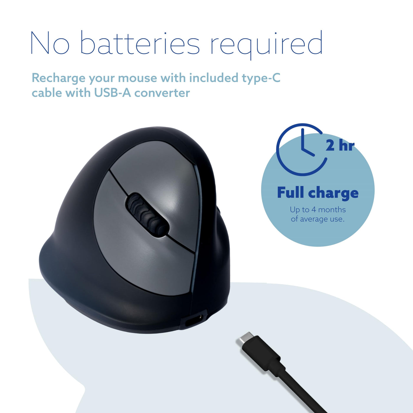 R Go He Break Ergonomic Mouse Wireless Bluetooth Vertical Ergo Mouse, Small Hand, Prevents Tennis Elbow/Mouse Arm Rsi, Silent