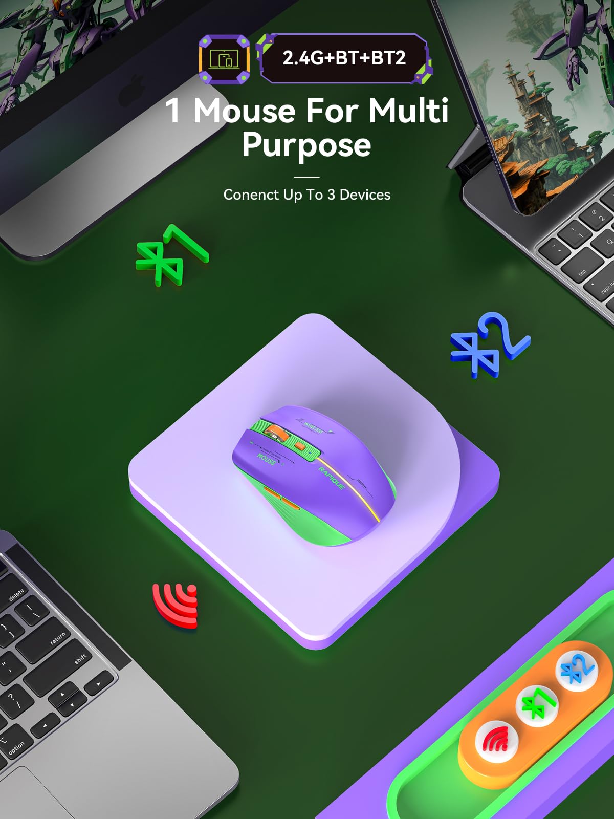 Rapique Bluetooth Wireless Mouse (Bt1/Bt2+Usb Receiver) Dual Mode, Rechargeable, Quiet Click, Multi Device Compatibility For L