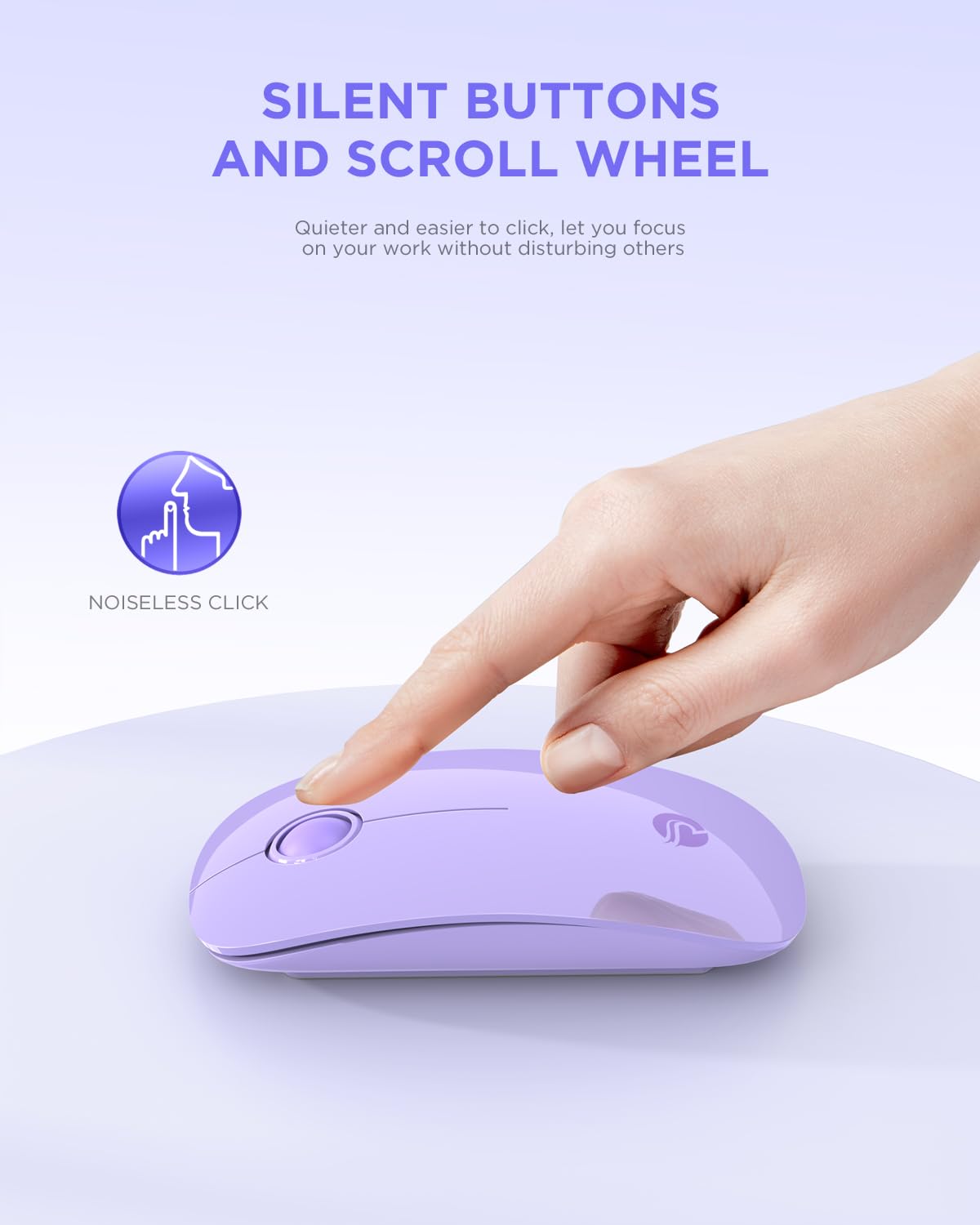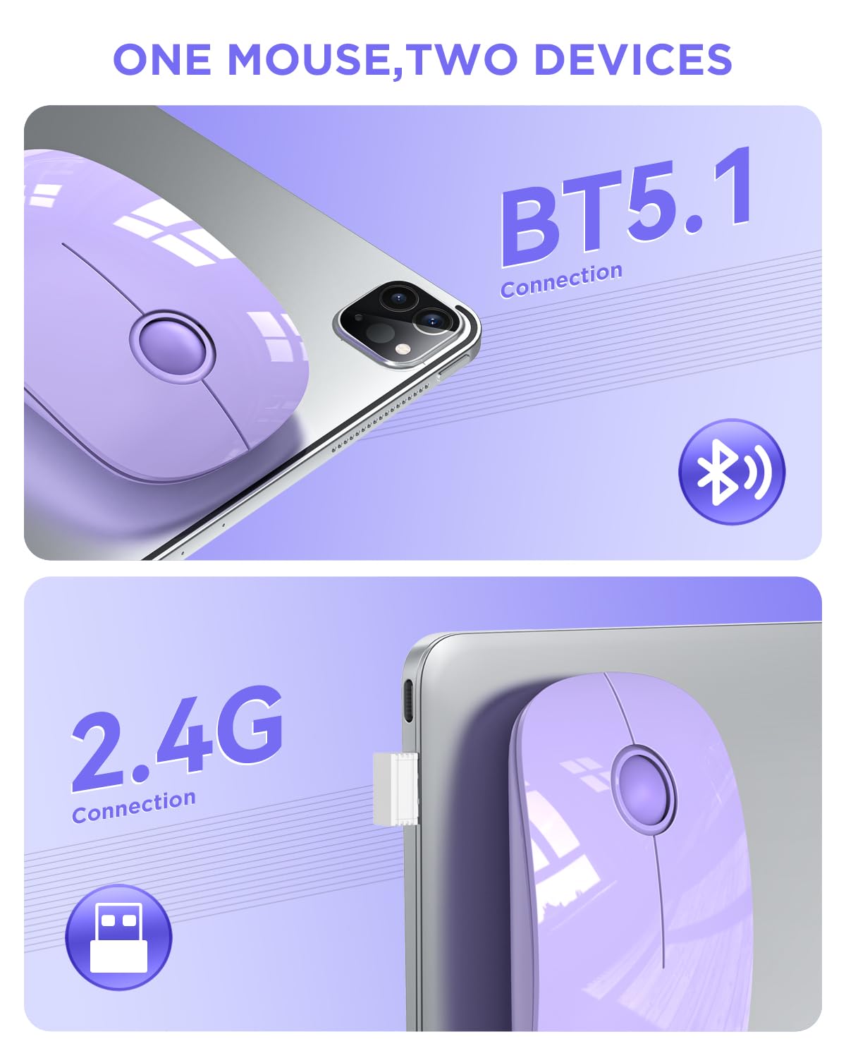 Rapique Wireless Bluetooth Mouse, Purple, 1600 Dpi, Long Battery Life, Dual Connectivity, Quiet Click, High Precision Optical Tr