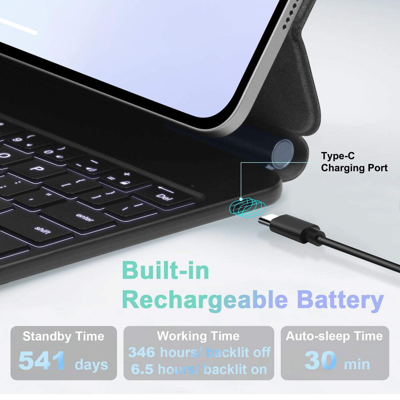 Riwezox Ipad Keyboard Case, Magic Keyboard For Ipad Air 13 Inch (M2) 2024, Case With Keyboard For Ipad Pro 12.9 Inch (6Th, 5Th, 4Th, 3Rd Gen) , Multi-Touch Trackpad, Backlit Keys, 2.16Lbs-Black