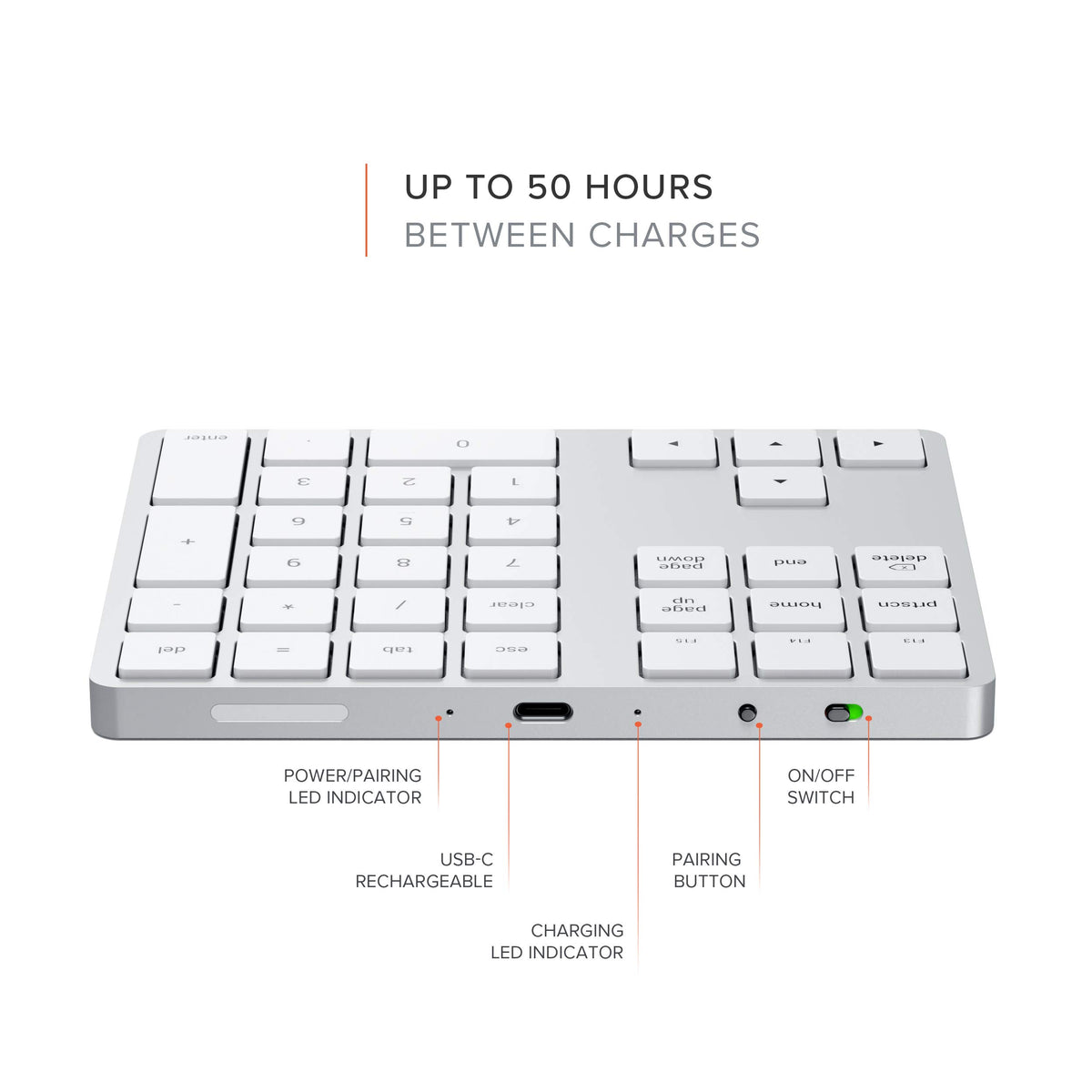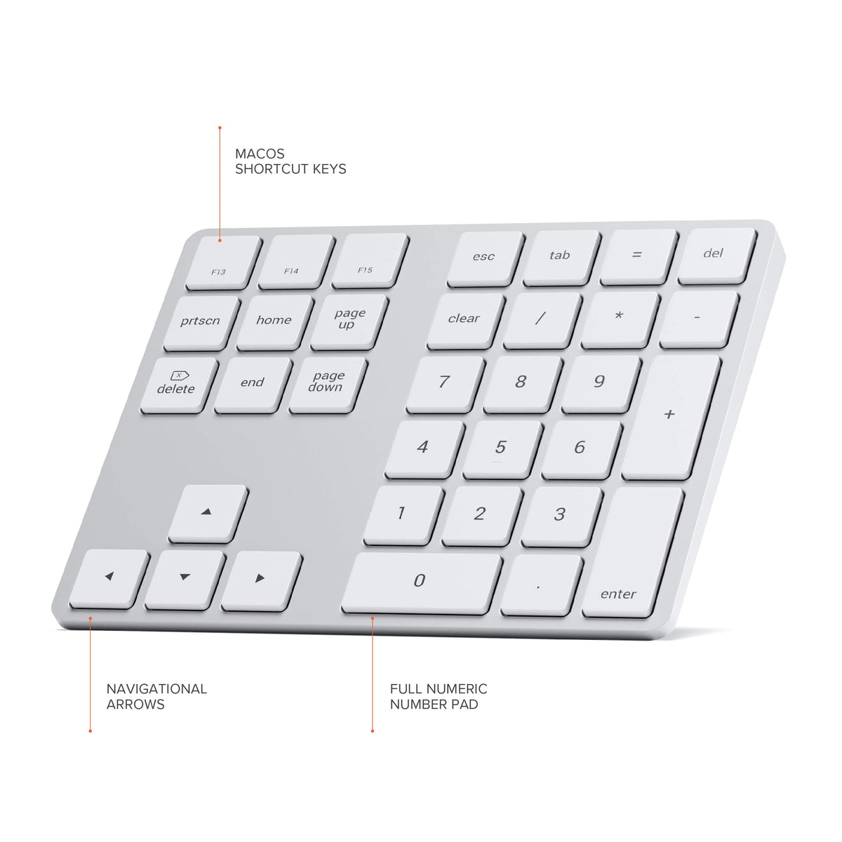 Expand Your Keyboard With The Satechi Bluetooth Extended Keypad. Featuring A Full Number Pad, Navigational Arrows, And Convenient Macos Shortcut Keys, The Bluetooth Extended Keypad Restores The Functionality Of A Desktop Keyboard To Your Tablet Or Laptop. With A Slim, Sleek Design, The Keypad Complements Your Modern Setup And Makes Data Entry A Breeze � Whether You�Re In The Office Or On-The-Go. Bluetooth Connection Ditch The Messy Cables And Wirelessly Connect To Your Computer With The Keypad�S Bluetooth Capabilities. With No Receiver Needed, Wireless Setup Is A Breeze. Macos Shortcut Keys Features Conveniently Placed Navigational Arrows And Macos Shortcut Keys To Help Improve Productivity. Windows Os May Not Support All Shortcuts. Rechargeable Usb-C Port Its Rechargeable Usb-C Port Allows You To Continue Work Wirelessly While The Keypad Charges � So Nothing Interrupts Your Workflow. Note: Keypad Cannot Be Used By Plugging Directly Into Your Computer. Slim Aluminum Profile Its Compact, Yet Sleek Design Complements Your Modern Setup And Is Perfect For Working In The Office Or On-The-Go. Compatibility Imac Pro/Imac, 2019 Macbook Pro/Air, 2019/2018 Ipad Pro, Ipad Air/Mini, Iphone 12 Pro Max/12 Pro/12 Mini12, 11 Pro Max/11 Pro/11, Xs Max/Xs/Xr/X, 8 Plus/8, Ios And Macos Devices. 1 Year Manufacturer Warranty