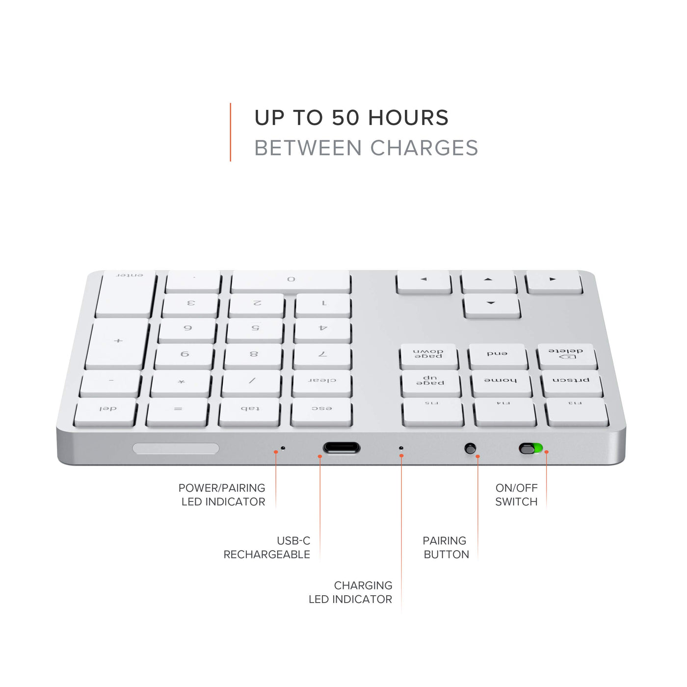 Satechi Bluetooth Extended Numeric Keypad � Slim Rechargeable 34 Key Numberpad � Compatible With 2022 Macbook Pro/Air M2, 2021 Ipad Pro M1, Imac/Imac Pro, Mac Mini (Silver)
